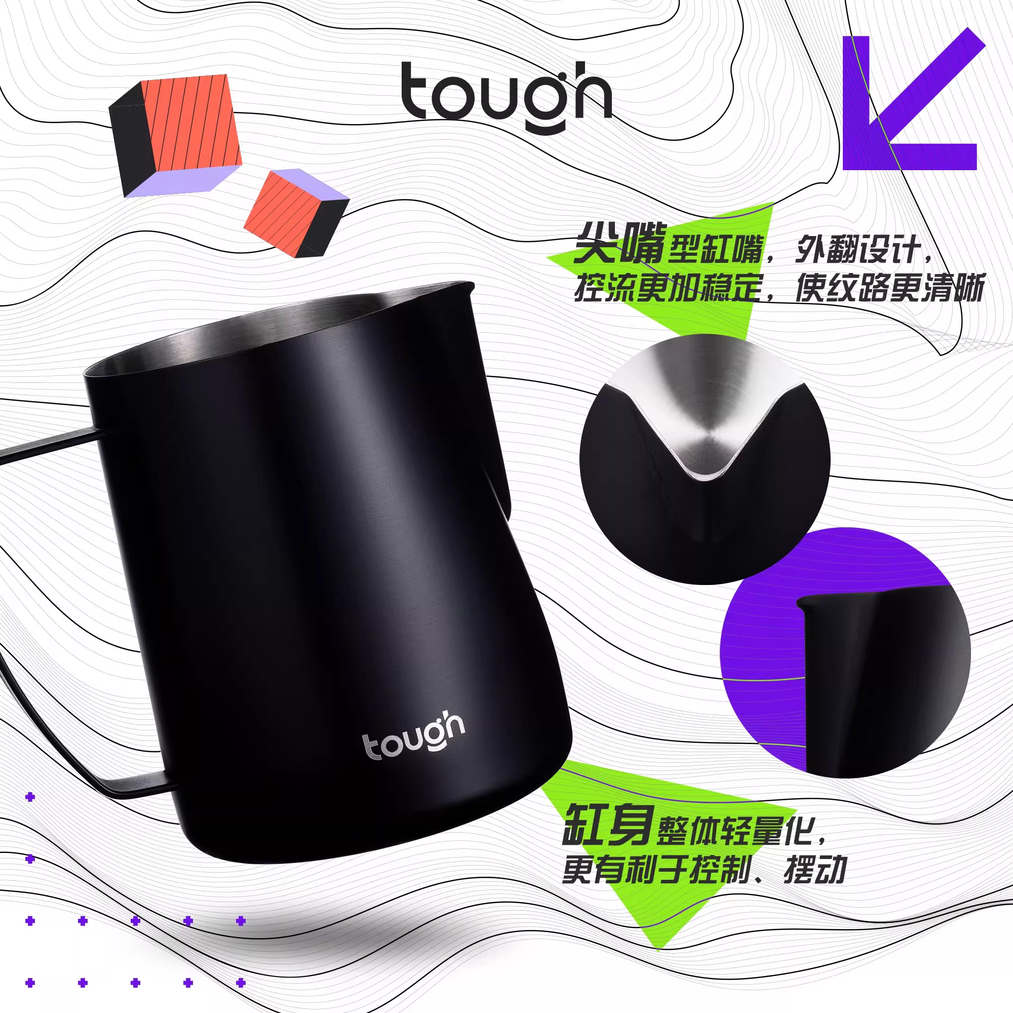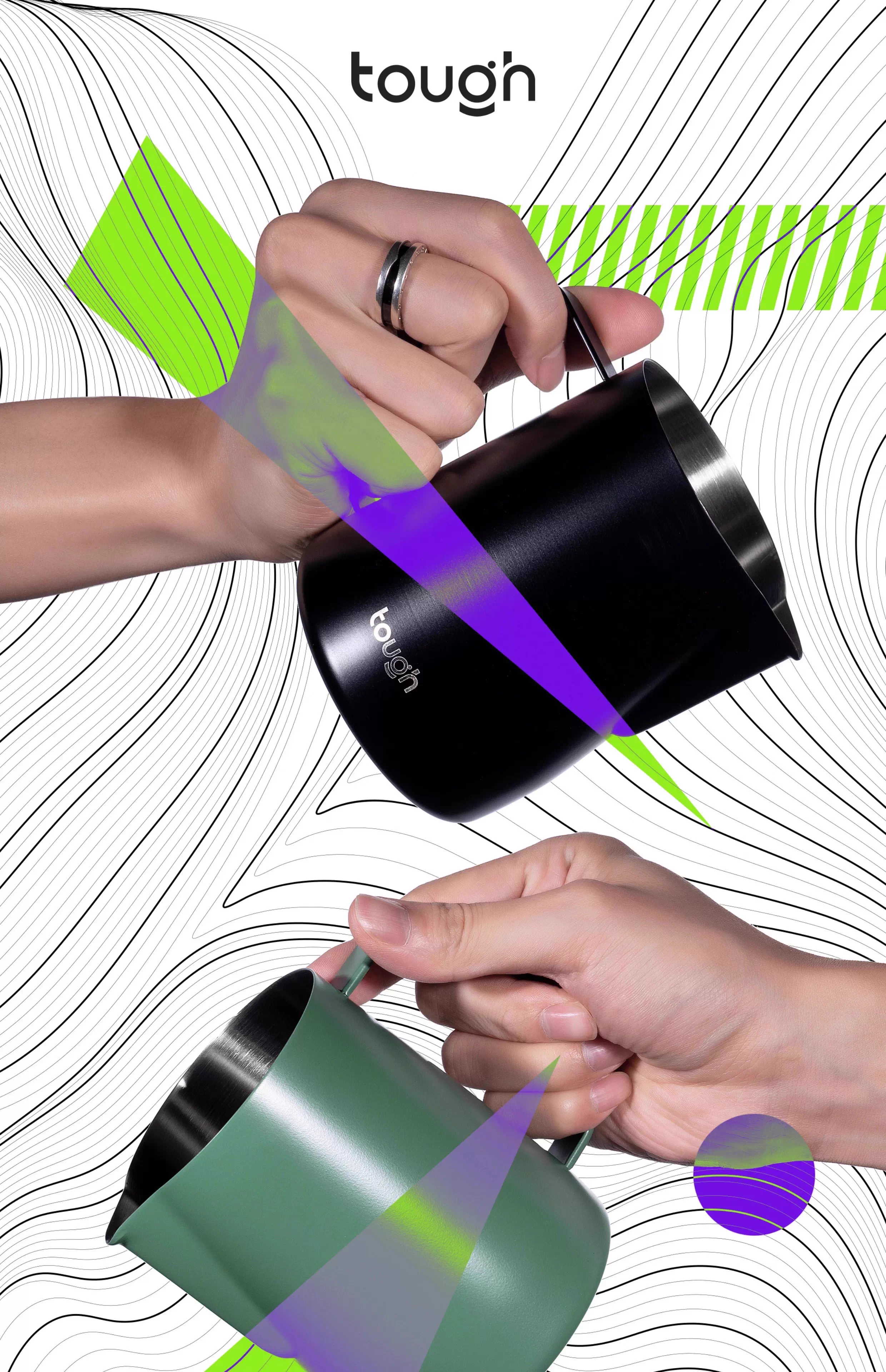 Bình sữa tạo bọt sữa kiểu dáng độc đáo, vòi nhọn, vòi tròn, chất liệu mithril, tạo bọt sữa có kết cấu, bình sữa tạo bọt sữa kiểu bomber Huijia
