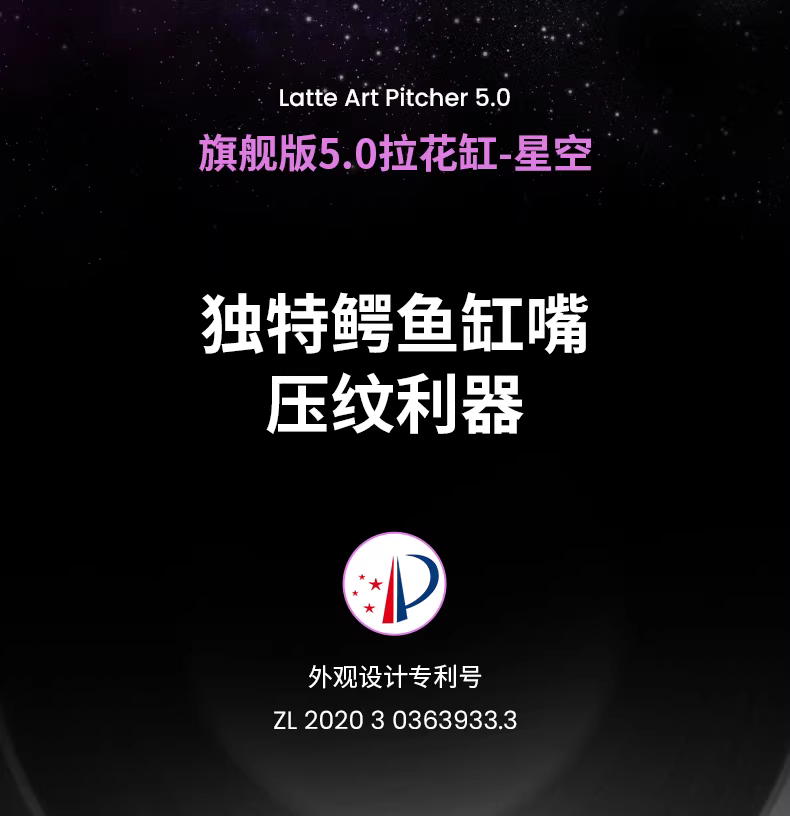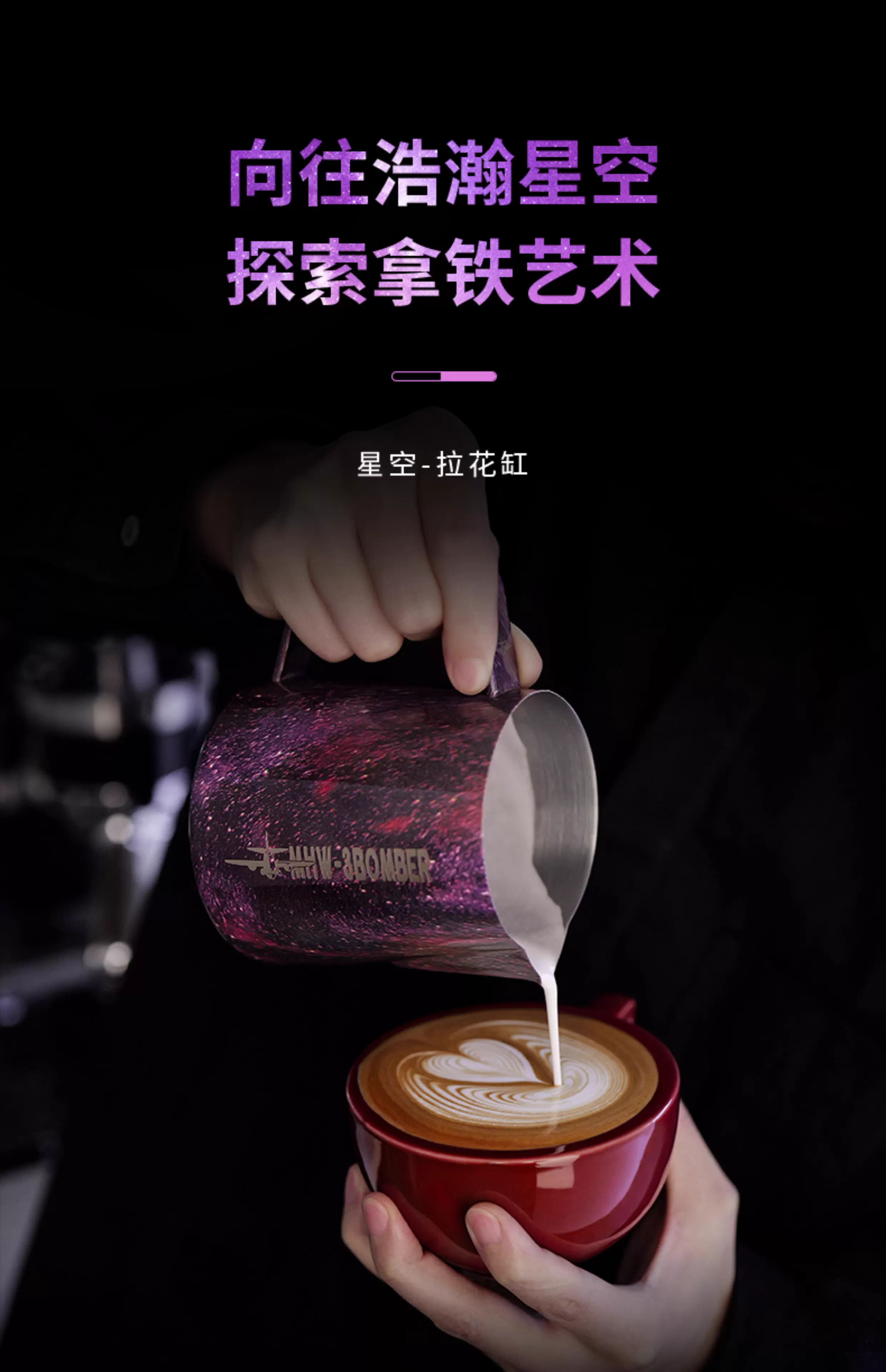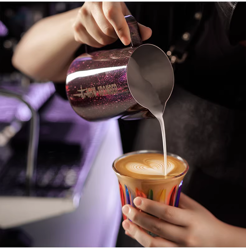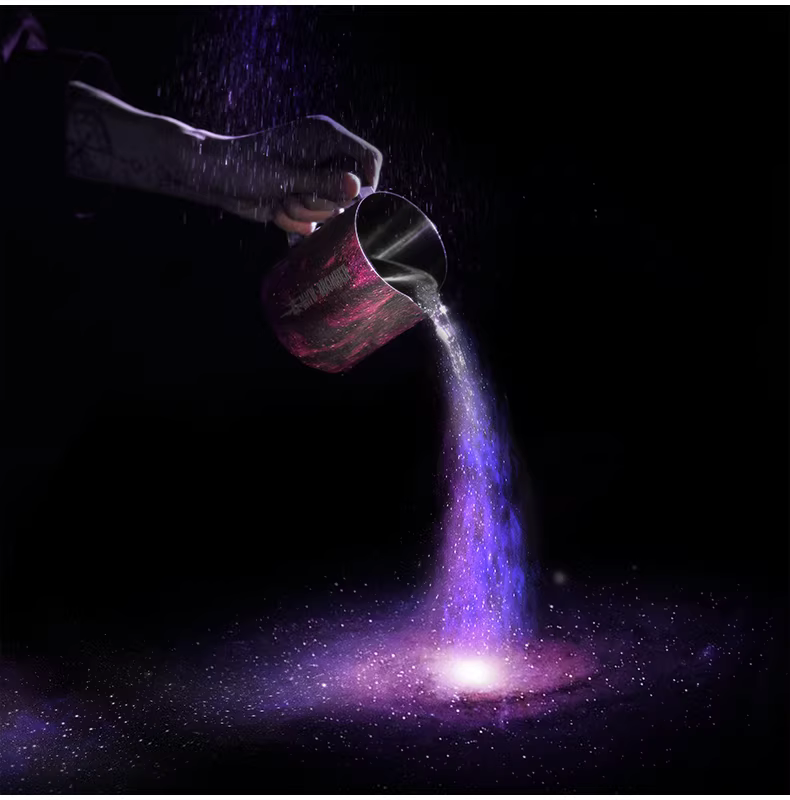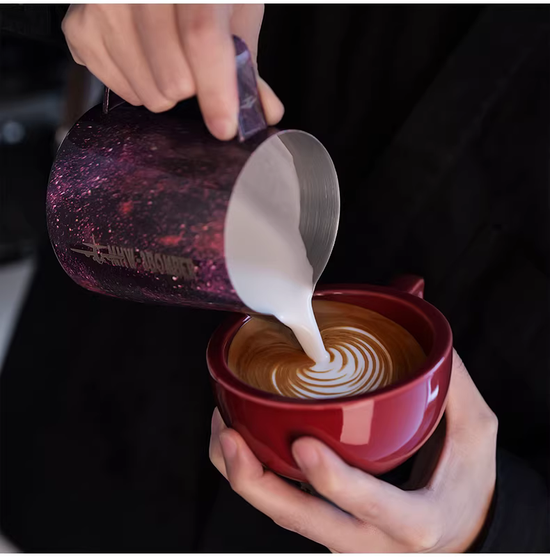 Bình tạo bọt sữa chuyên nghiệp Bomber MHW Starry Sky Latte Art, chất liệu thép không gỉ, vòi tròn, kiểu dáng Ý, dùng tạo họa tiết Latte Art.