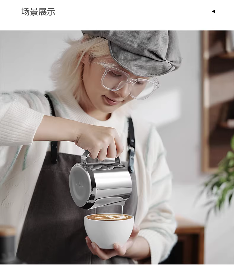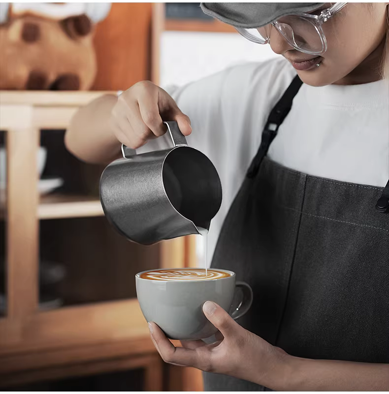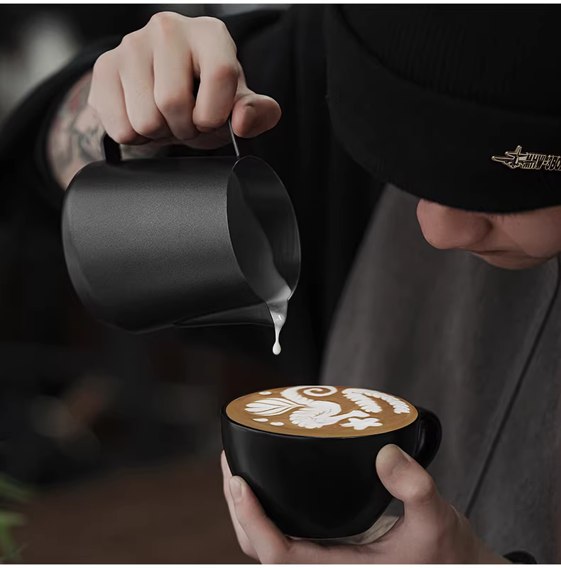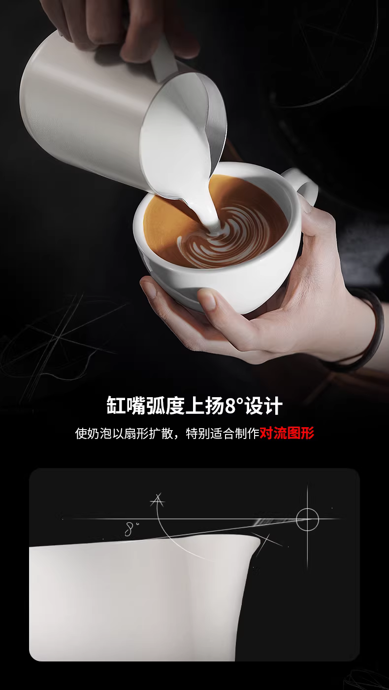 Bình tạo bọt sữa chuyên nghiệp kiểu dáng chữ U, bình tạo bọt sữa có họa tiết nổi, bình tạo bọt sữa kiểu Ý, bình tạo bọt sữa Latte Art, bình tạo bọt sữa Latte Art MHW GT.