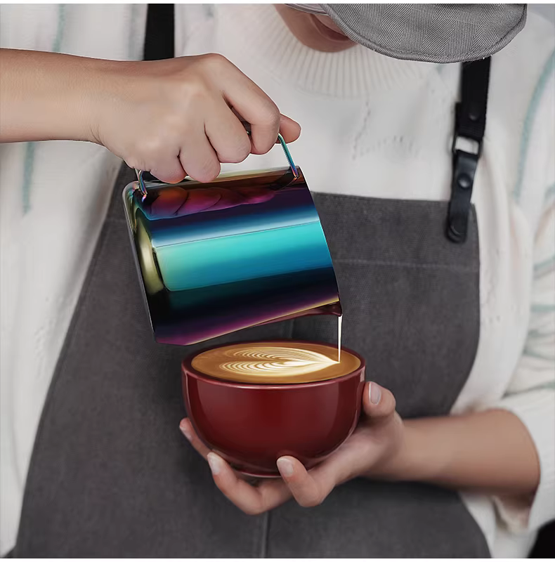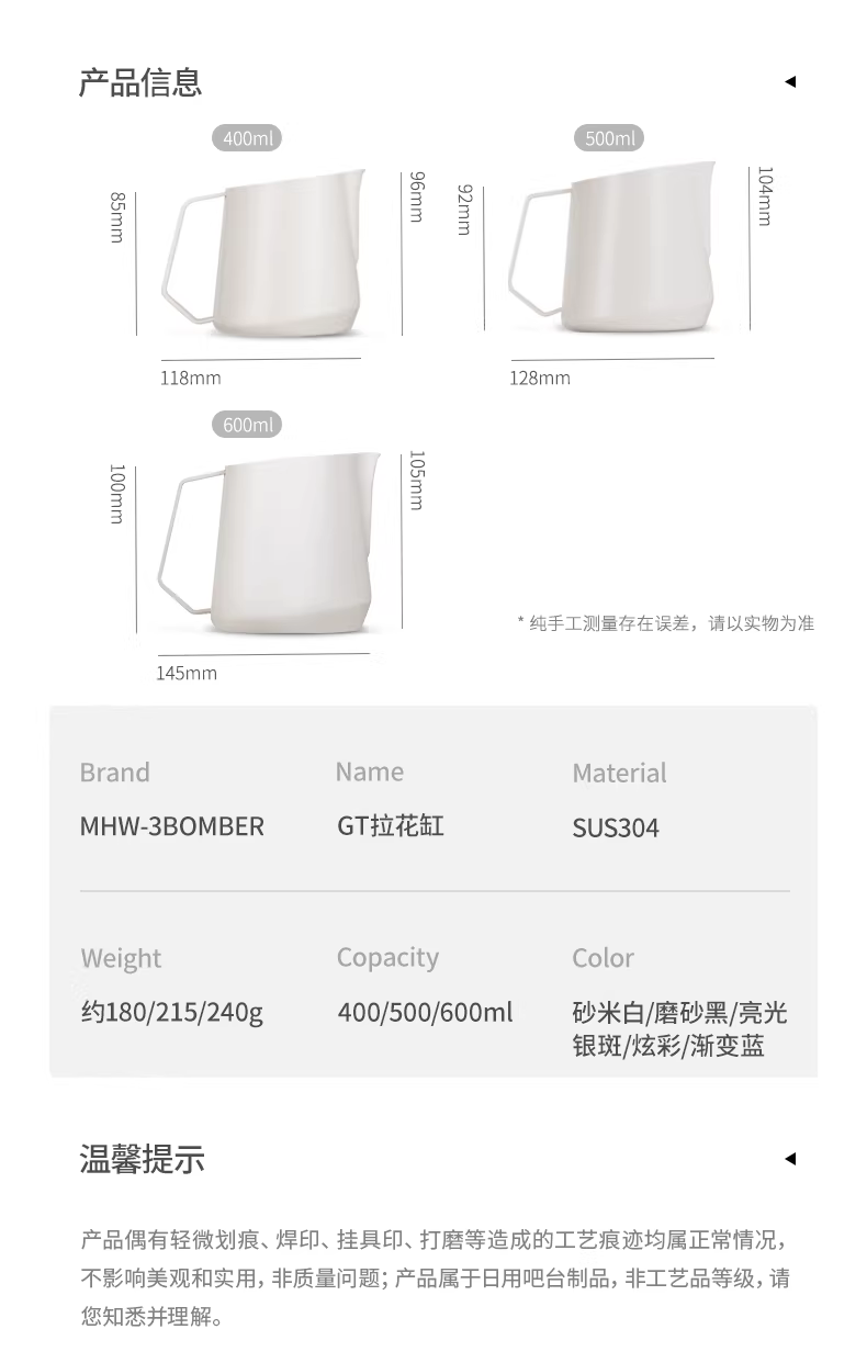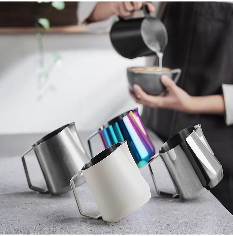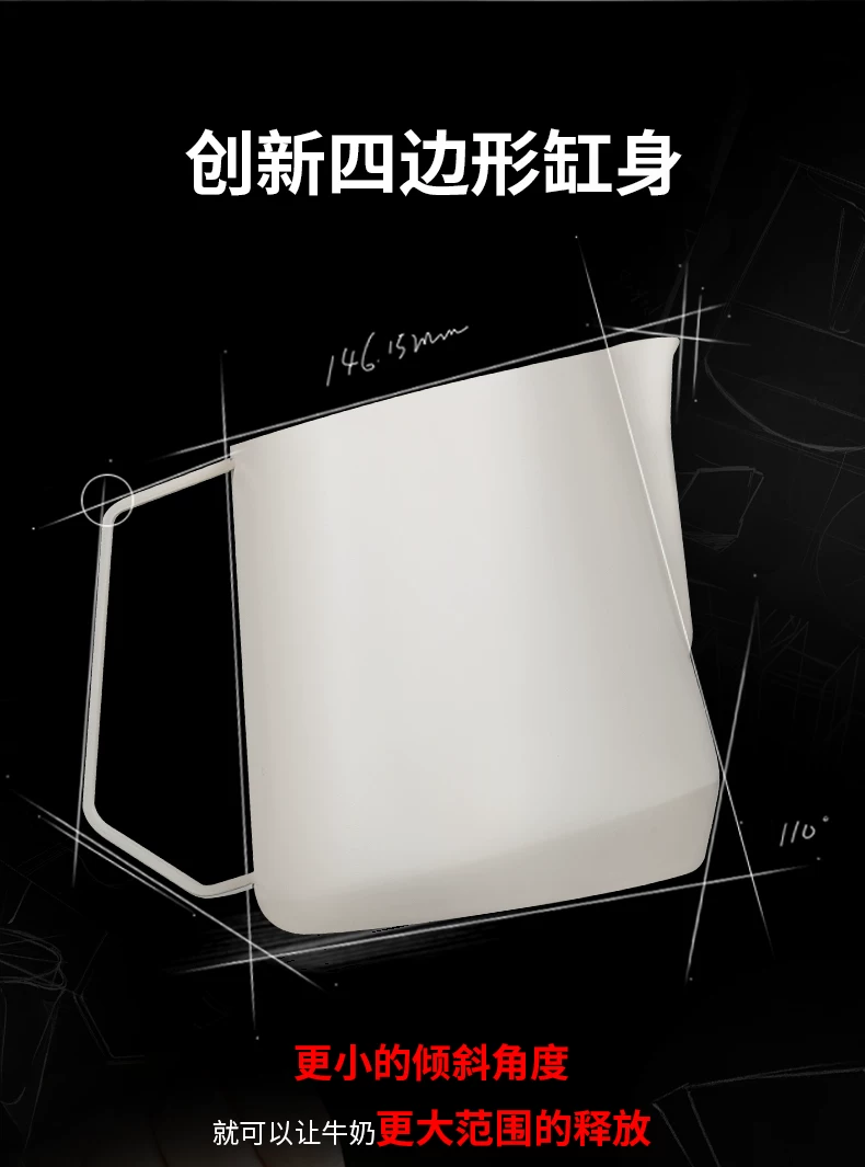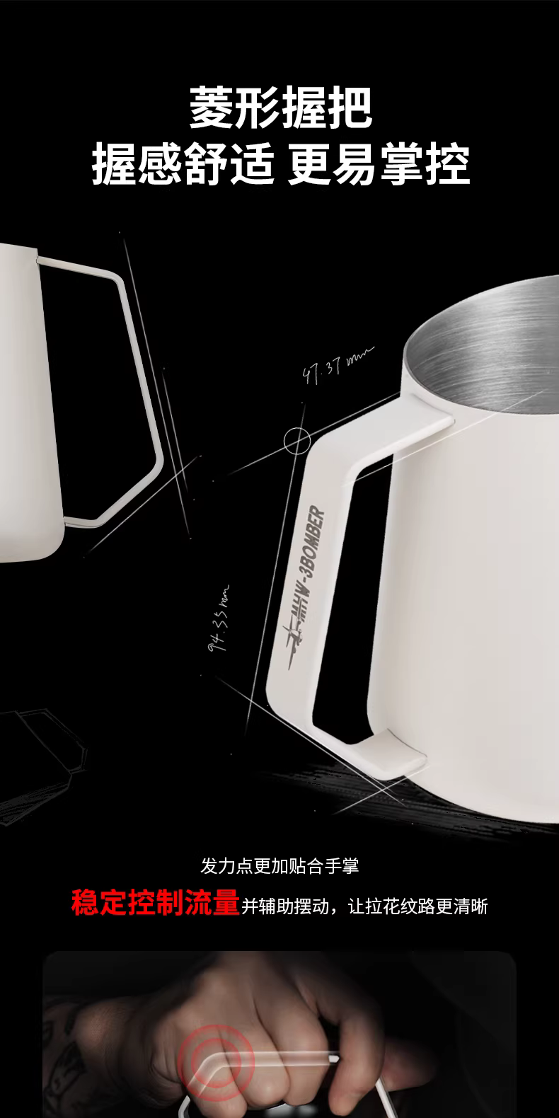 Bình tạo bọt sữa chuyên nghiệp kiểu dáng chữ U, bình tạo bọt sữa có họa tiết nổi, bình tạo bọt sữa kiểu Ý, bình tạo bọt sữa Latte Art, bình tạo bọt sữa Latte Art MHW GT.