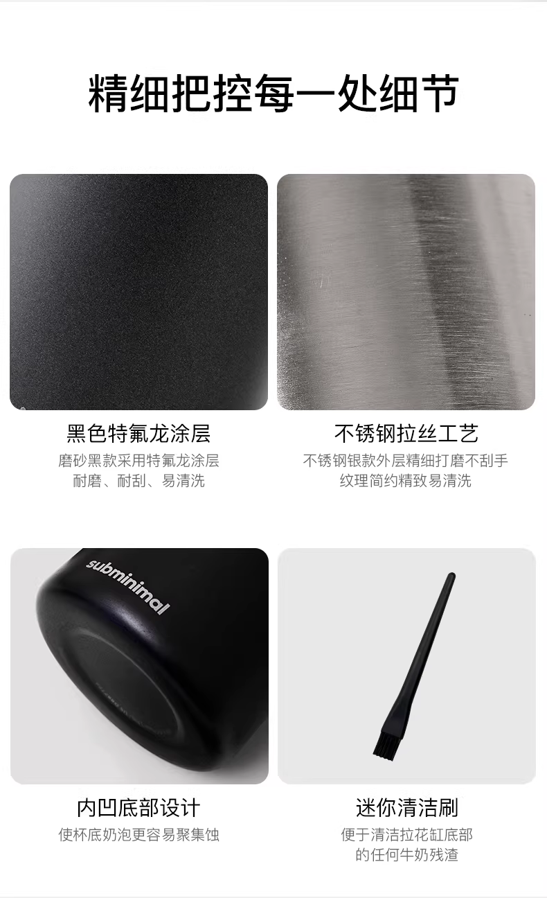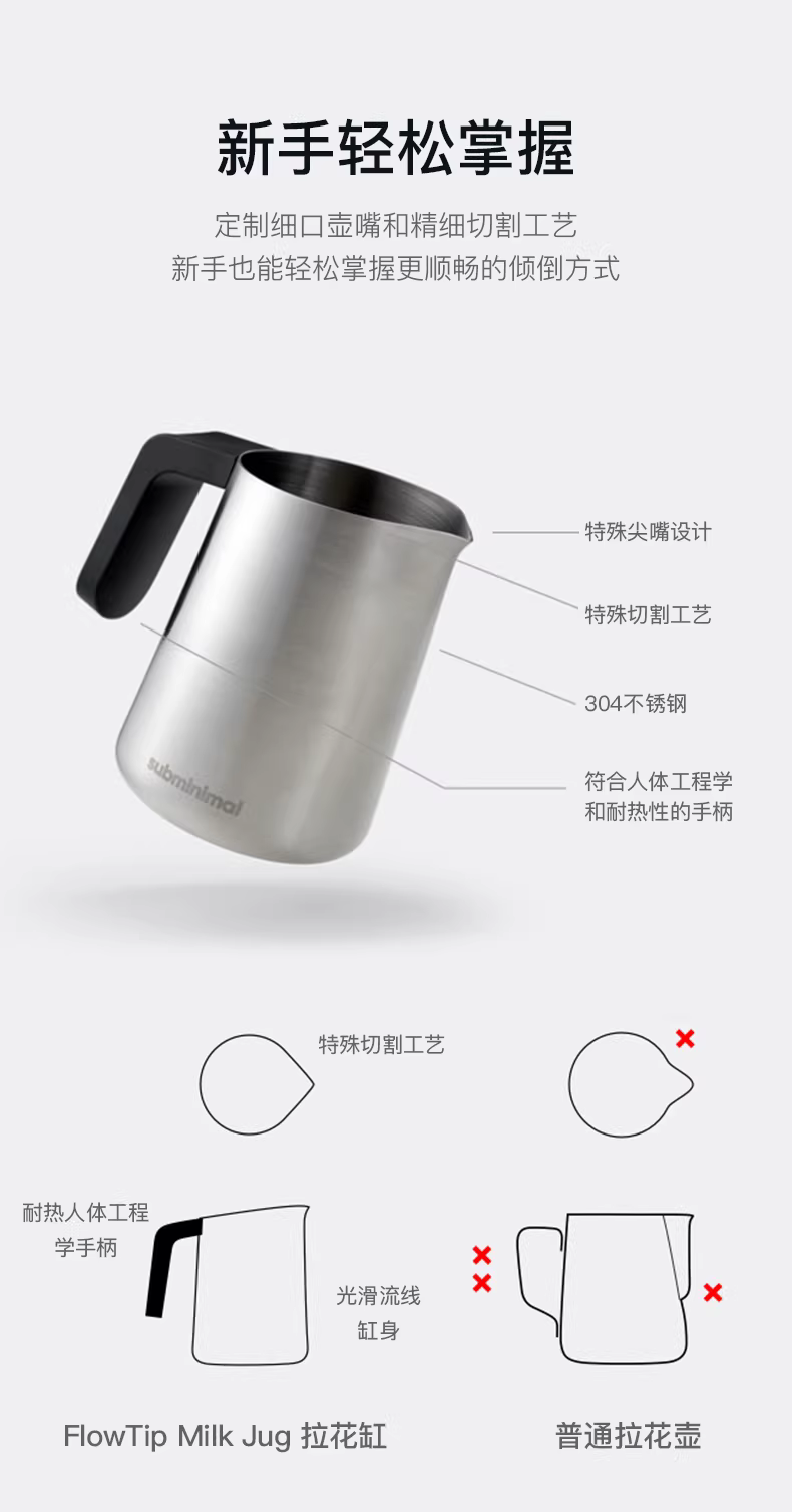 - Bình tạo bọt sữa Subminimal FlowTip có vòi nhọn, bình đựng sữa cà phê bằng thép không gỉ, bình tạo bọt sữa, cốc tạo bọt sữa