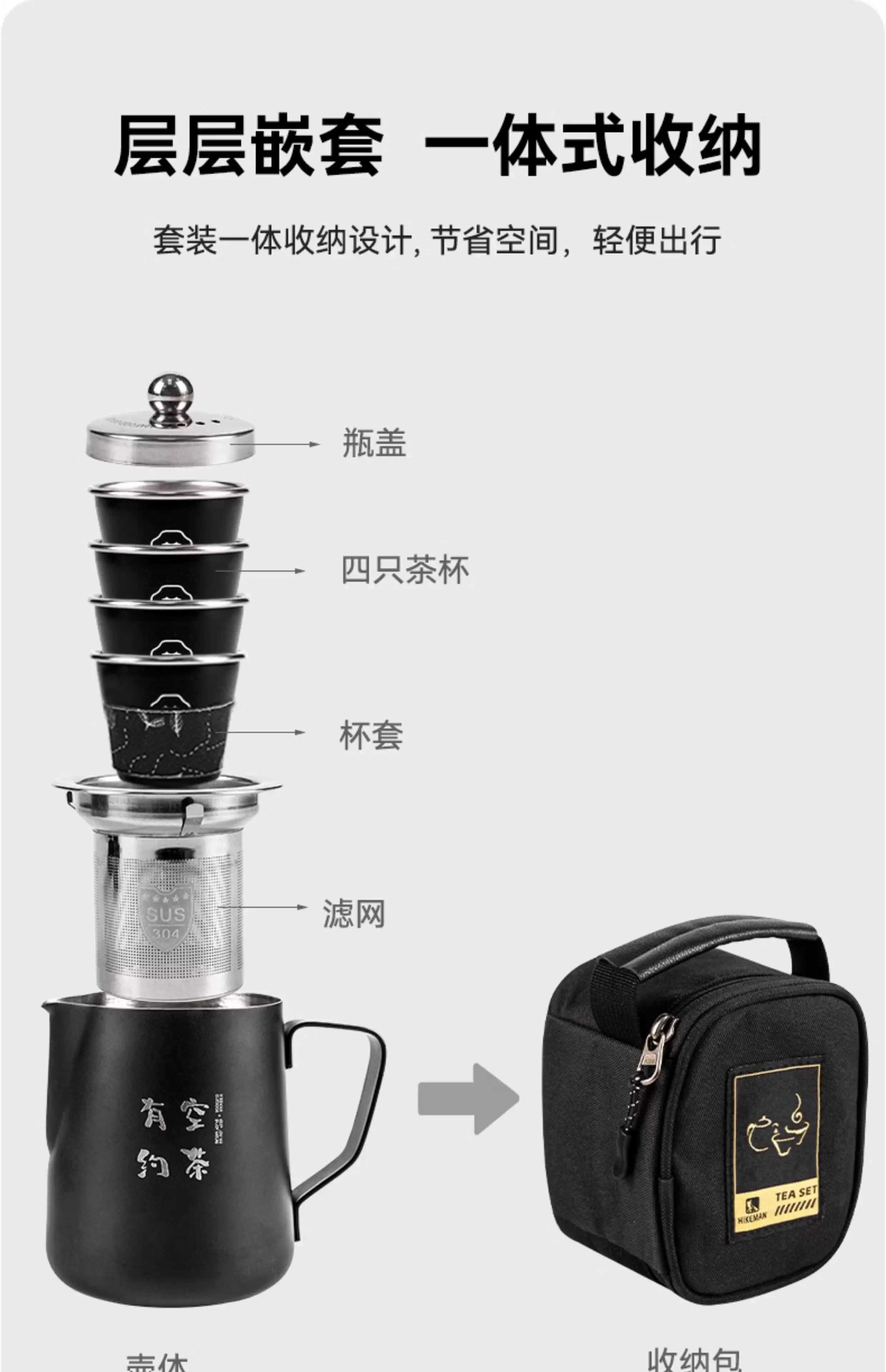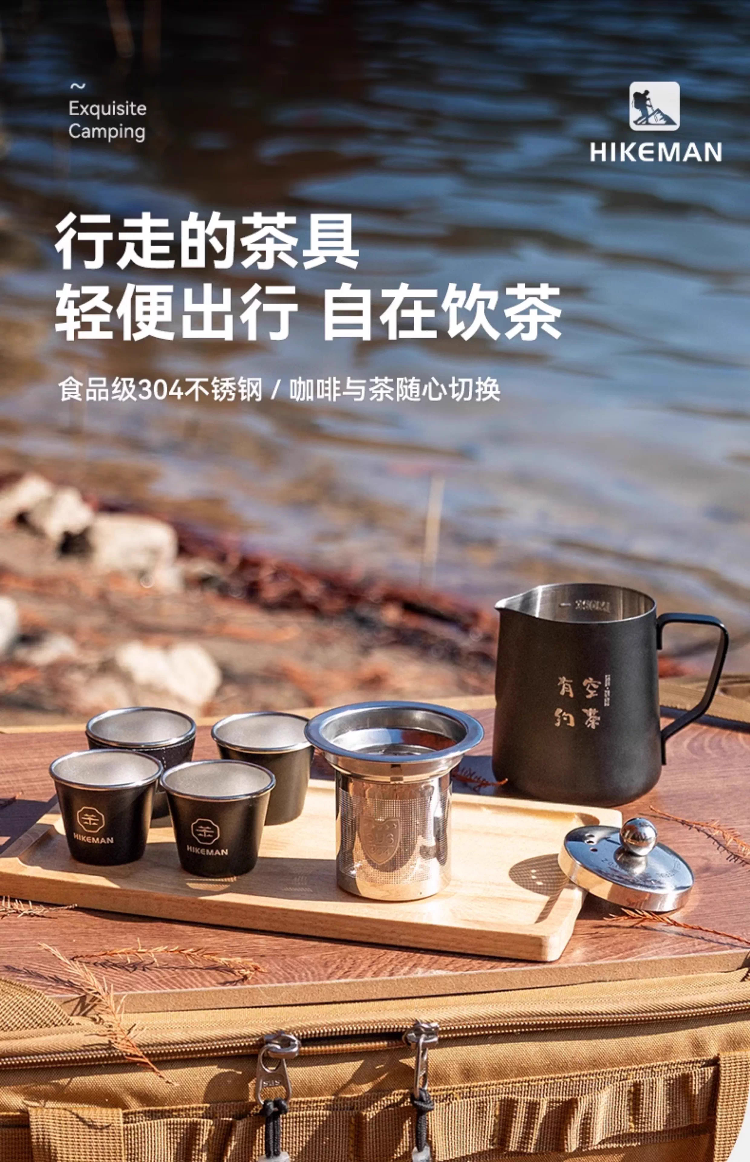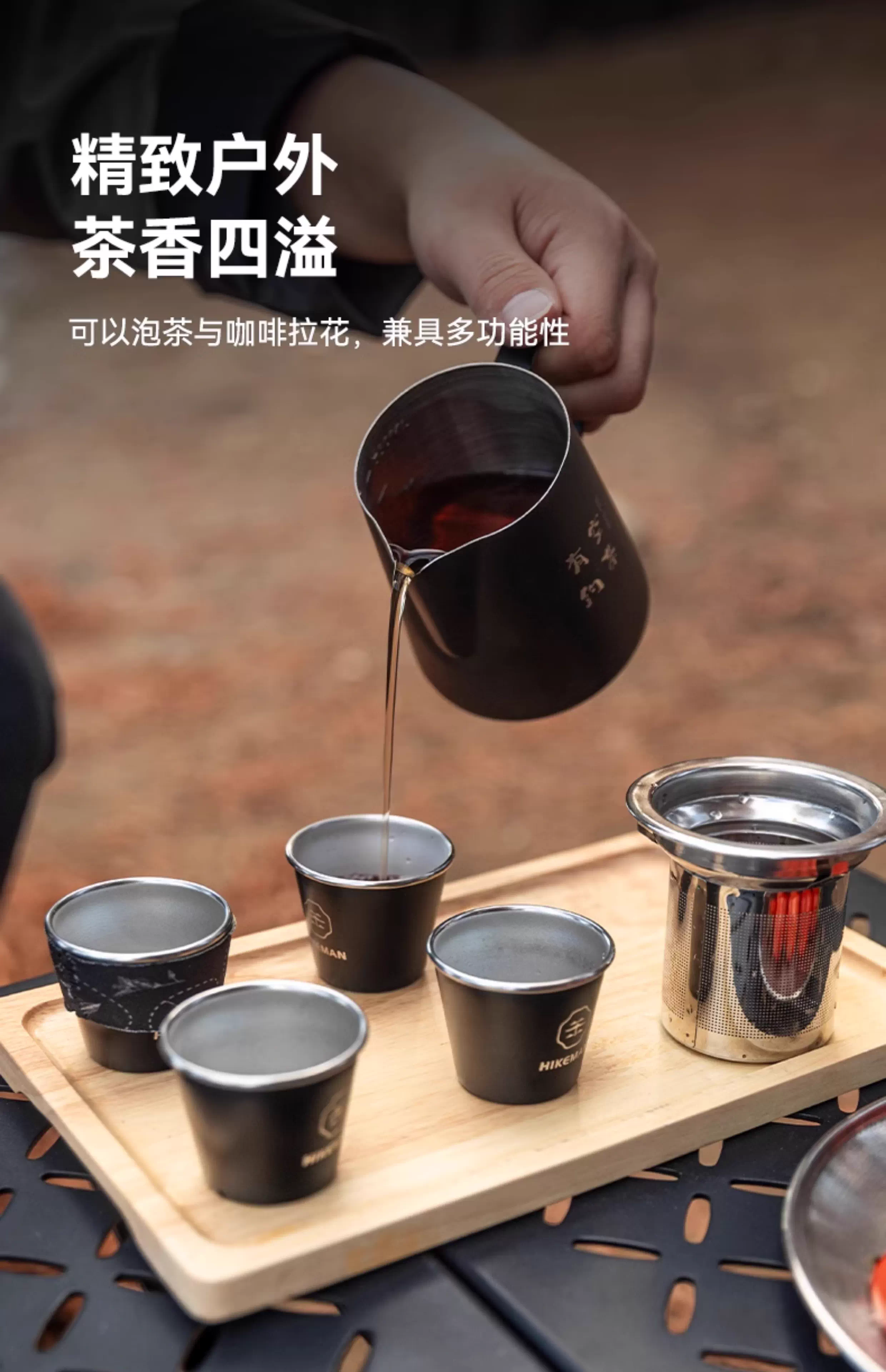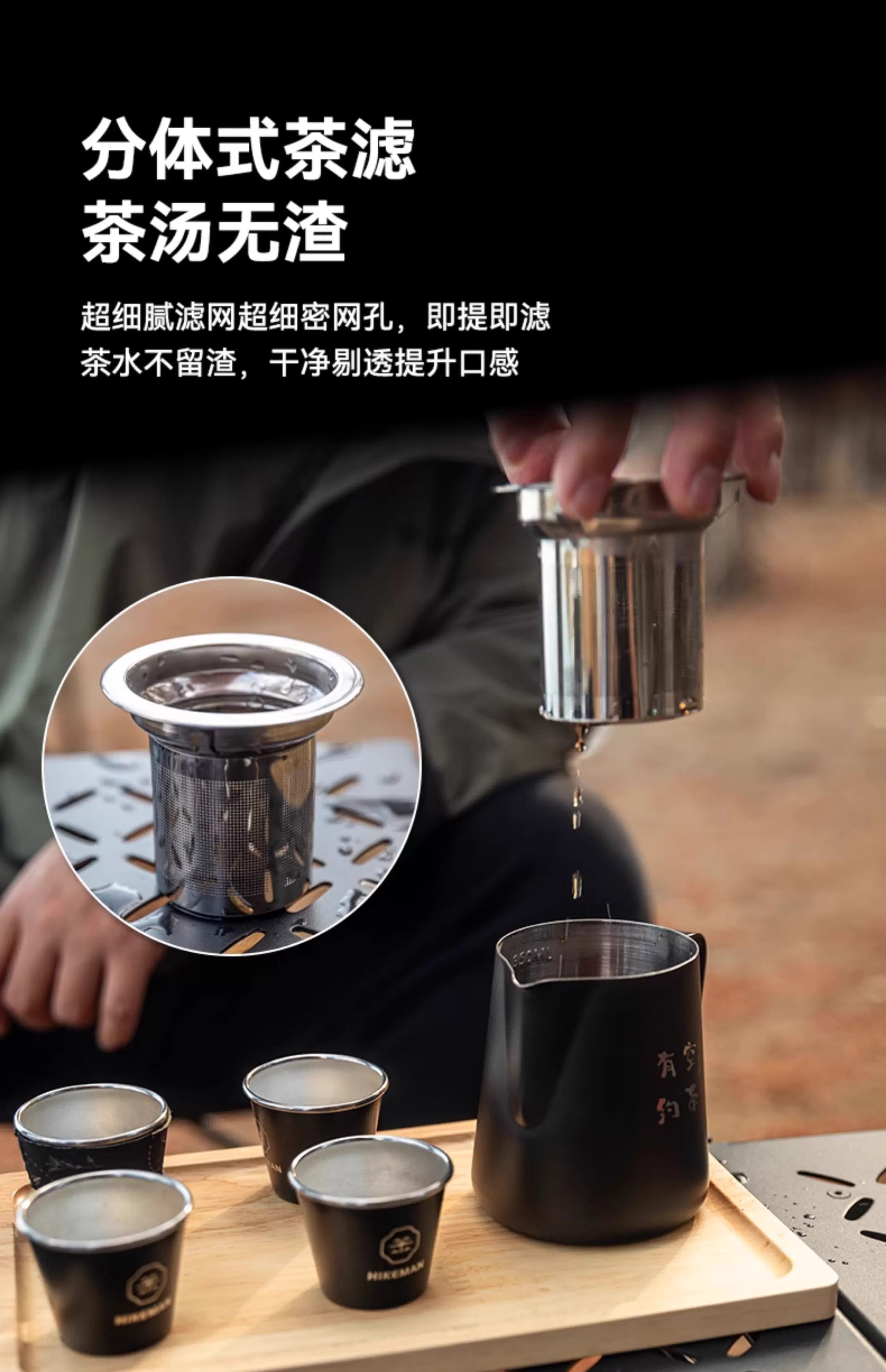 - Bộ ấm trà cắm trại ngoài trời với cốc công bằng, ngăn cách trà-nước, dụng cụ pha trà kung fu, ấm pha cà phê du lịch, đi bộ đường dài, pha thủ công