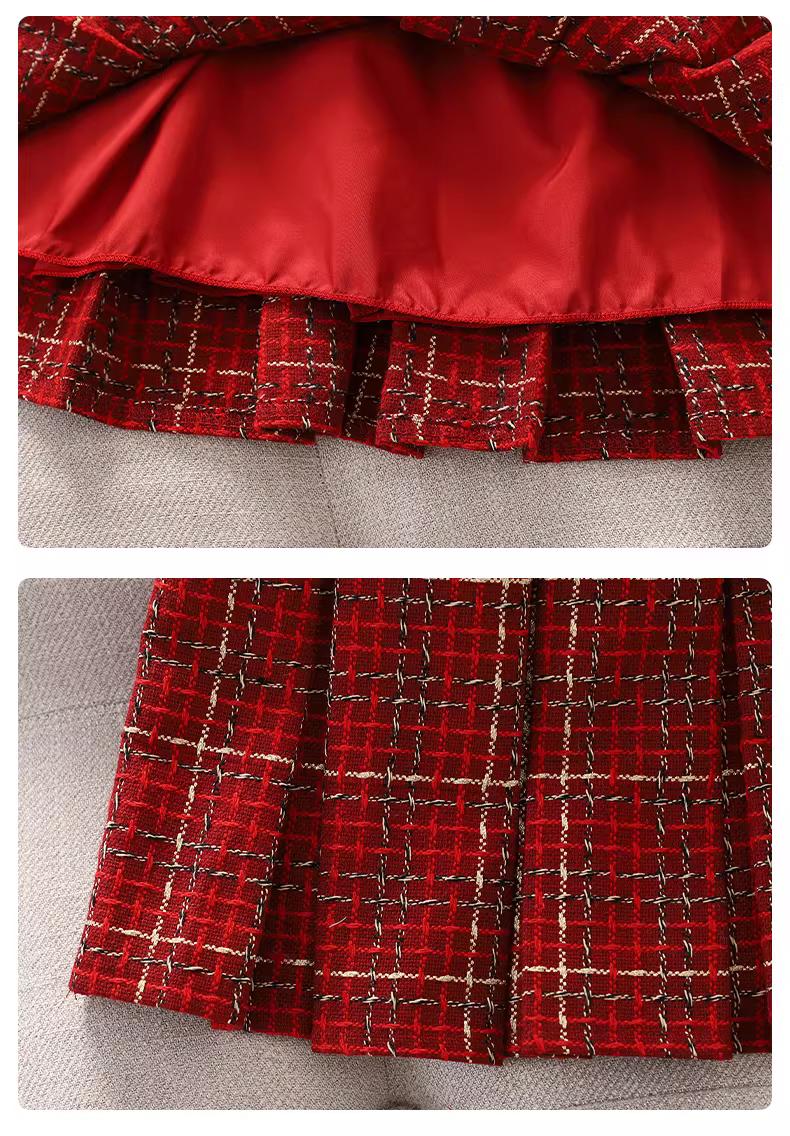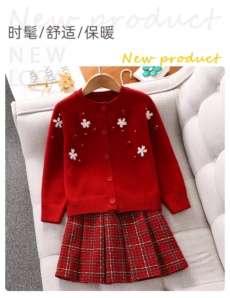 - Bộ áo len cardigan màu đỏ dành cho bé gái Váy giáng sinh và năm mới dành cho trẻ em Váy xếp ly mùa thu đông dành cho bé gái Quần áo năm mới