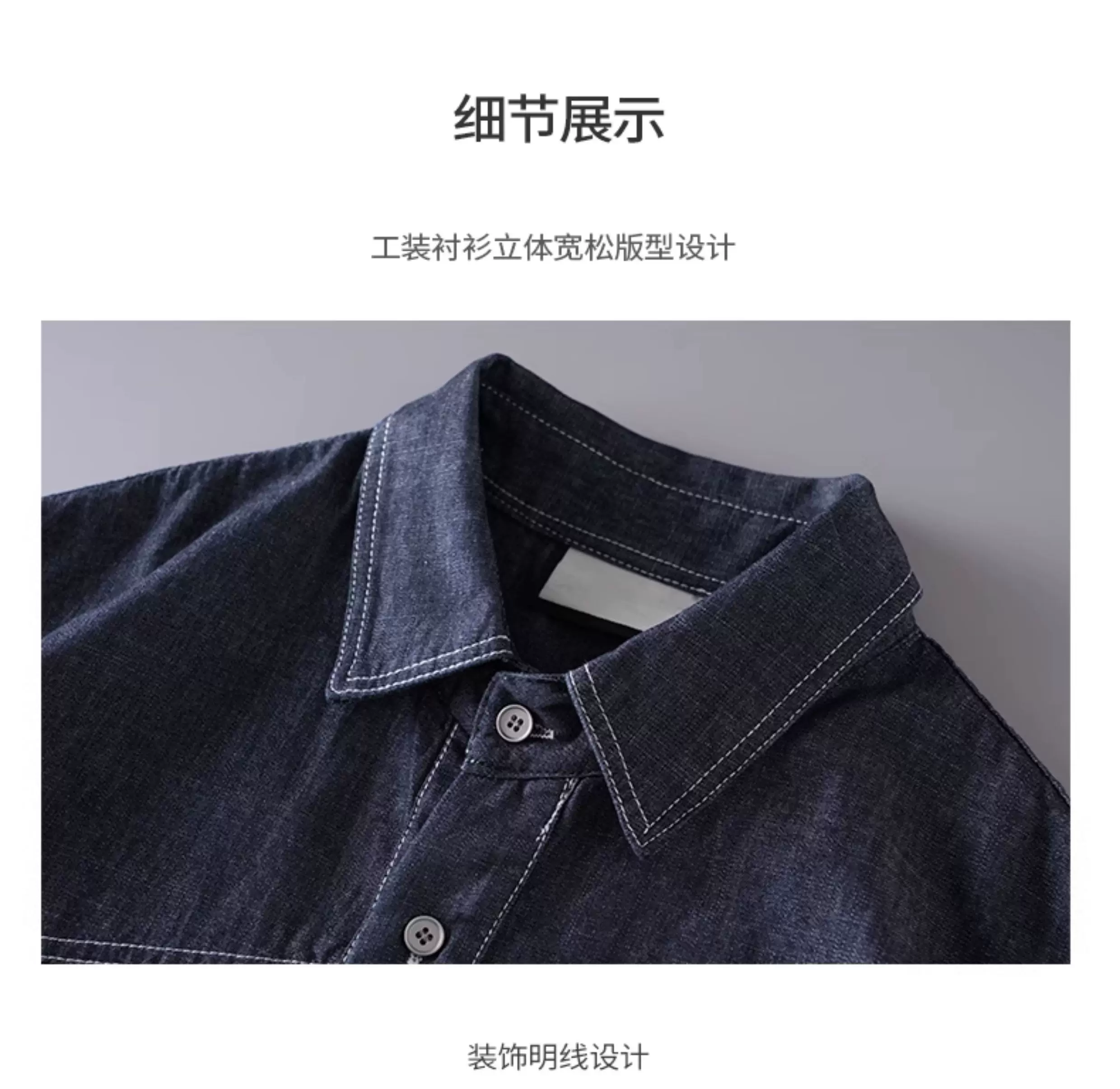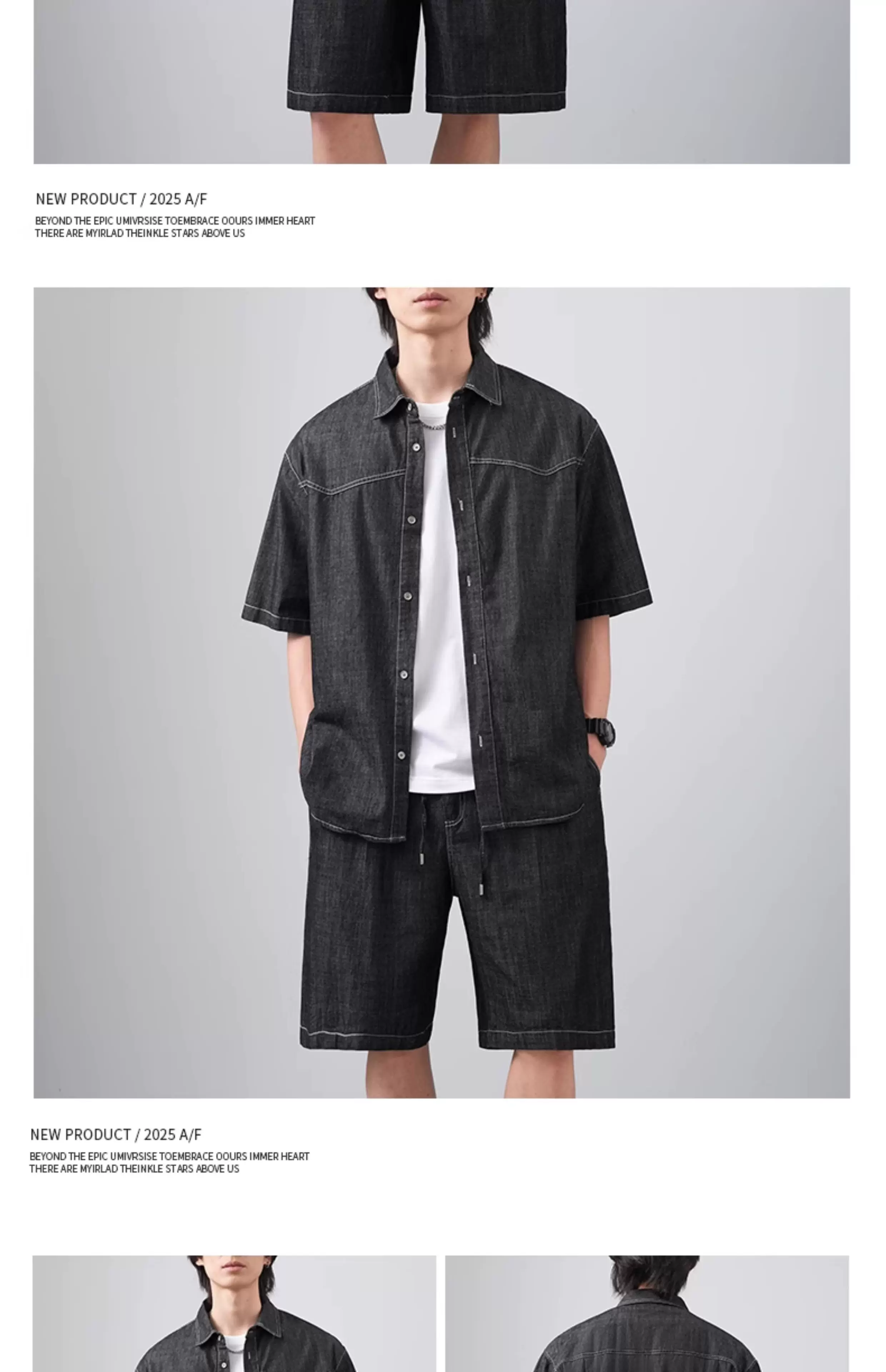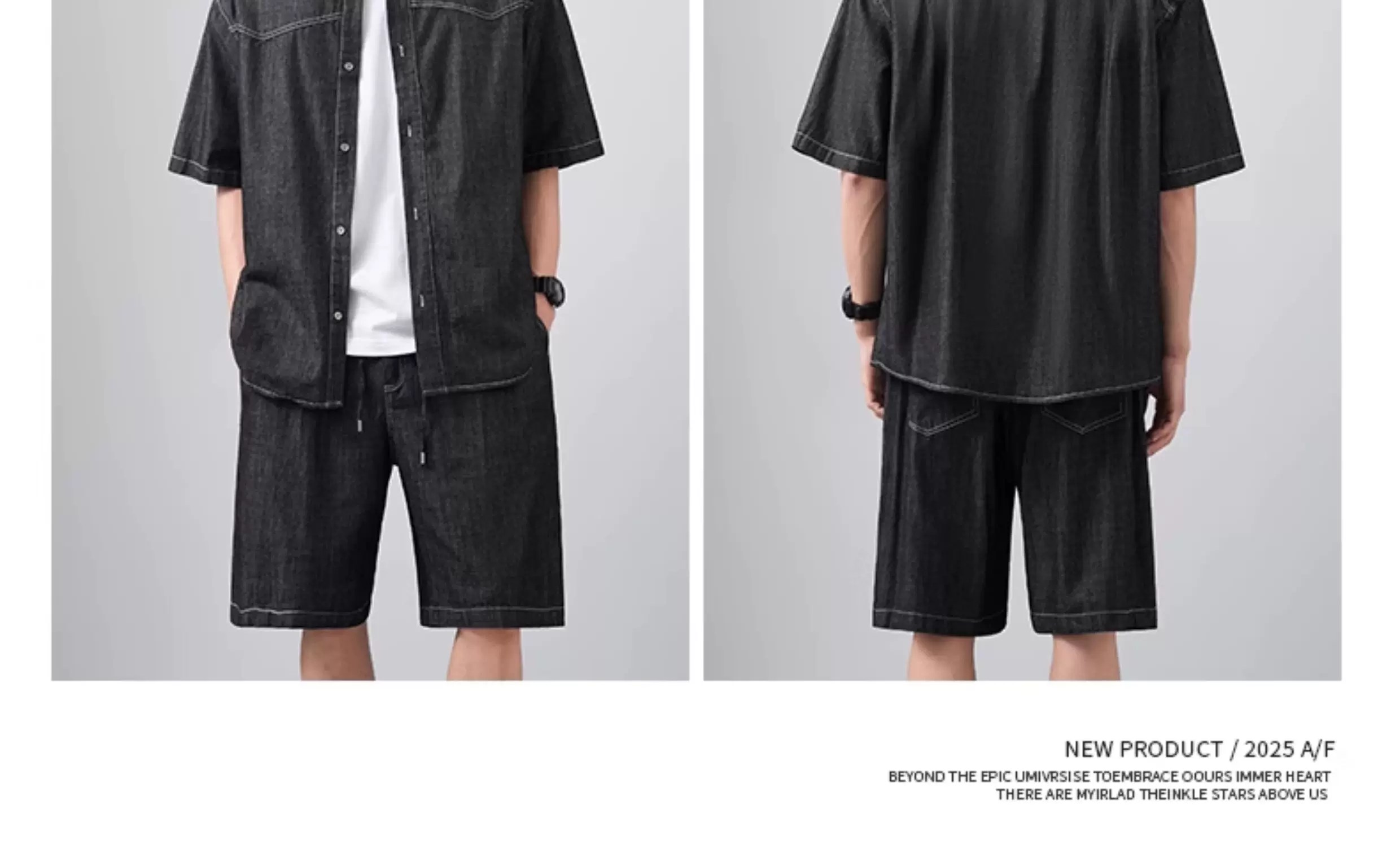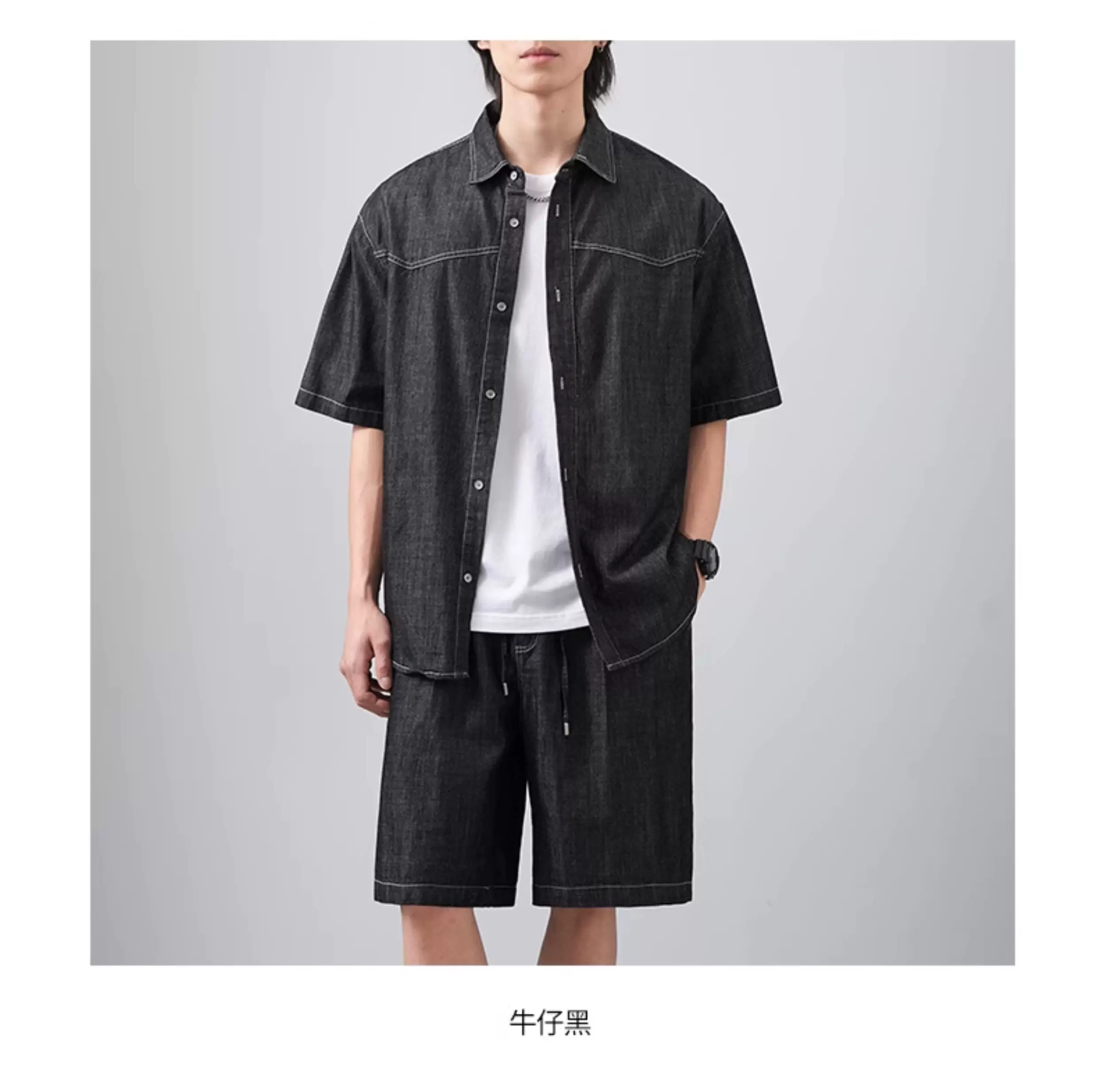 - Bộ áo sơ mi và quần short denim kiểu Mỹ OMZM dành cho nam, áo sơ mi có cổ dáng rộng mùa hè, bộ hai mảnh cổ điển cao cấp
