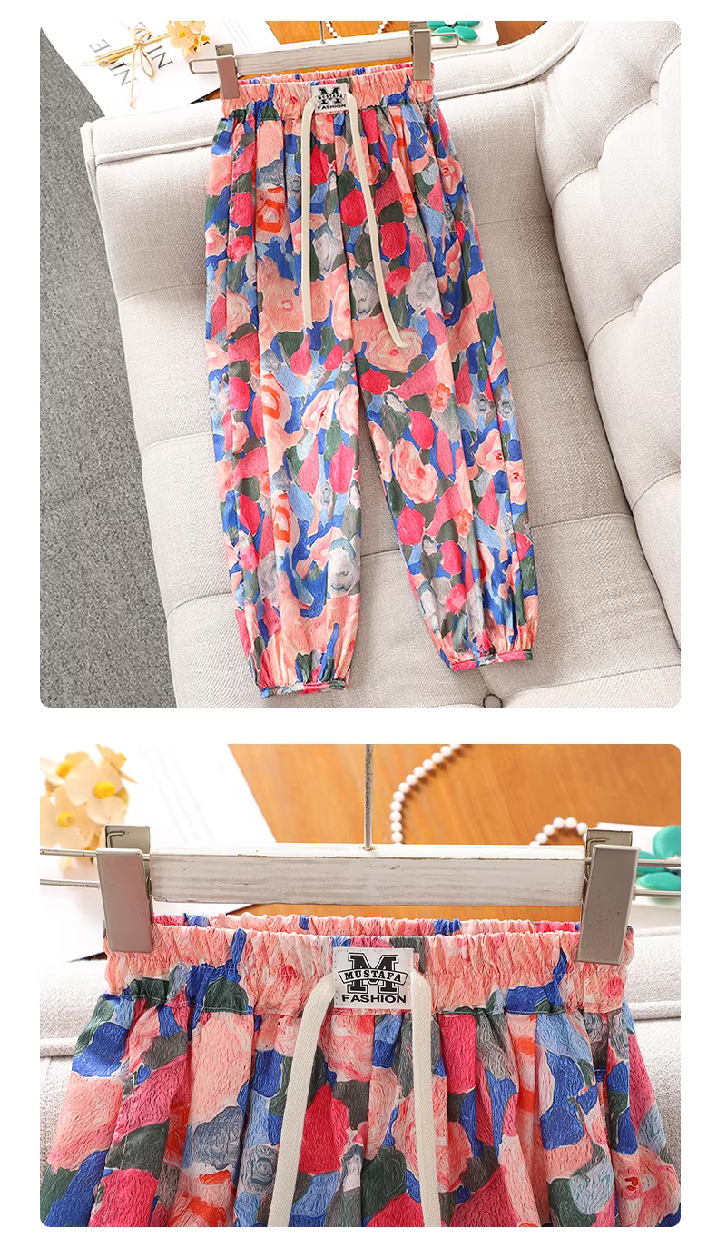 - Bộ đồ hè bé gái kiểu mới 2025, áo ba lỗ hoa nhí quần ống rộng, bộ hai mảnh mùa hè cho bé