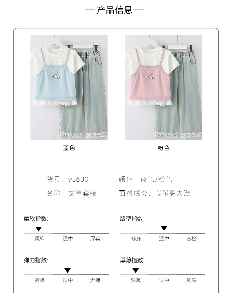- Bộ đồ nữ bé gái hè 2025 kiểu mới phong cách Hàn Quốc, quần yếm ren tay ngắn, quần jean ba món