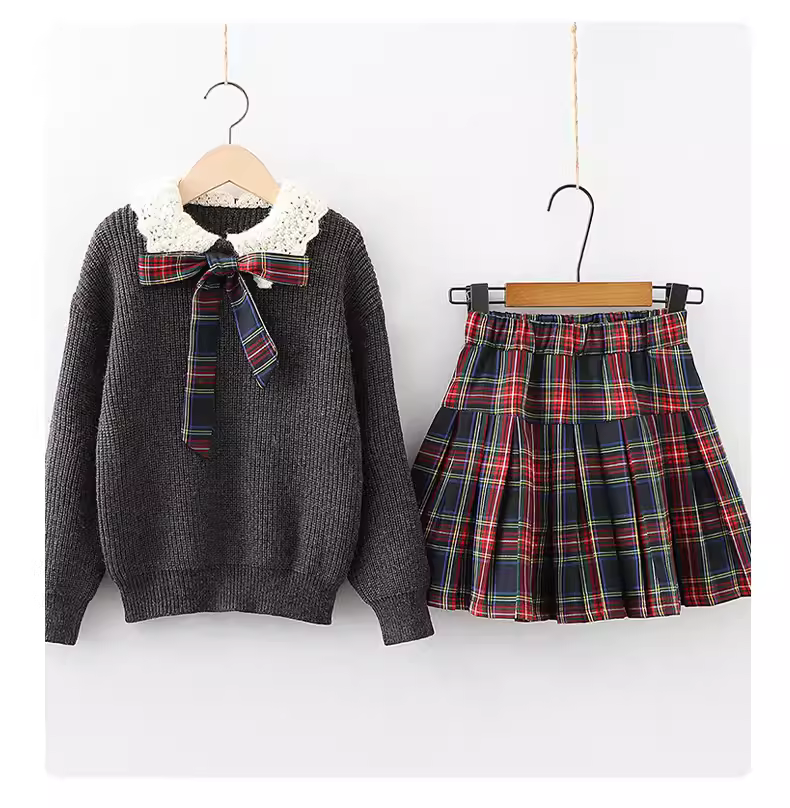 Bộ đồ nữ thu đông 2021, trang phục Tết, màu đỏ, phong cách học sinh, kiểu JK, chân váy hai mảnh dành cho trẻ lớn
