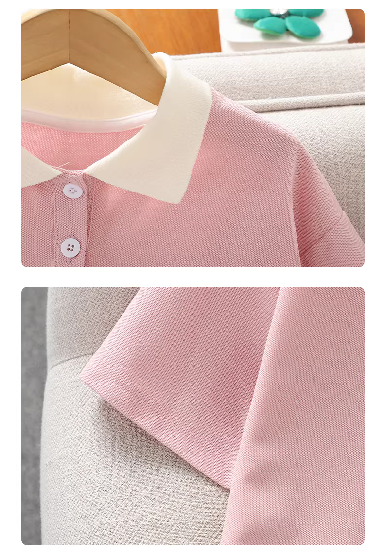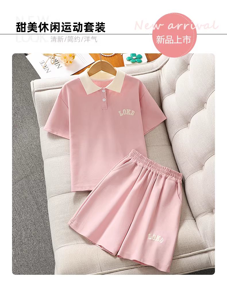 - Bộ đồ thể thao hè hai mảnh kiểu Hàn Quốc cho bé gái, áo polo ngắn tay, quần đùi, mẫu mới 2025, bộ đồ thường ngày cho bé gái