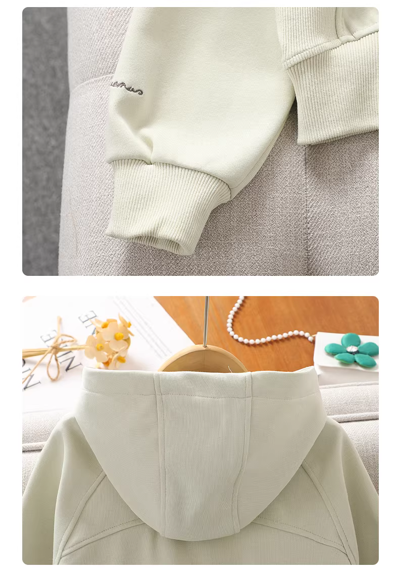 - Bộ đồ thể thao nữ xuân thu 2025 kiểu mới áo khoác ngắn có mũ trẻ em quần thẳng bộ hai mảnh thời trang
