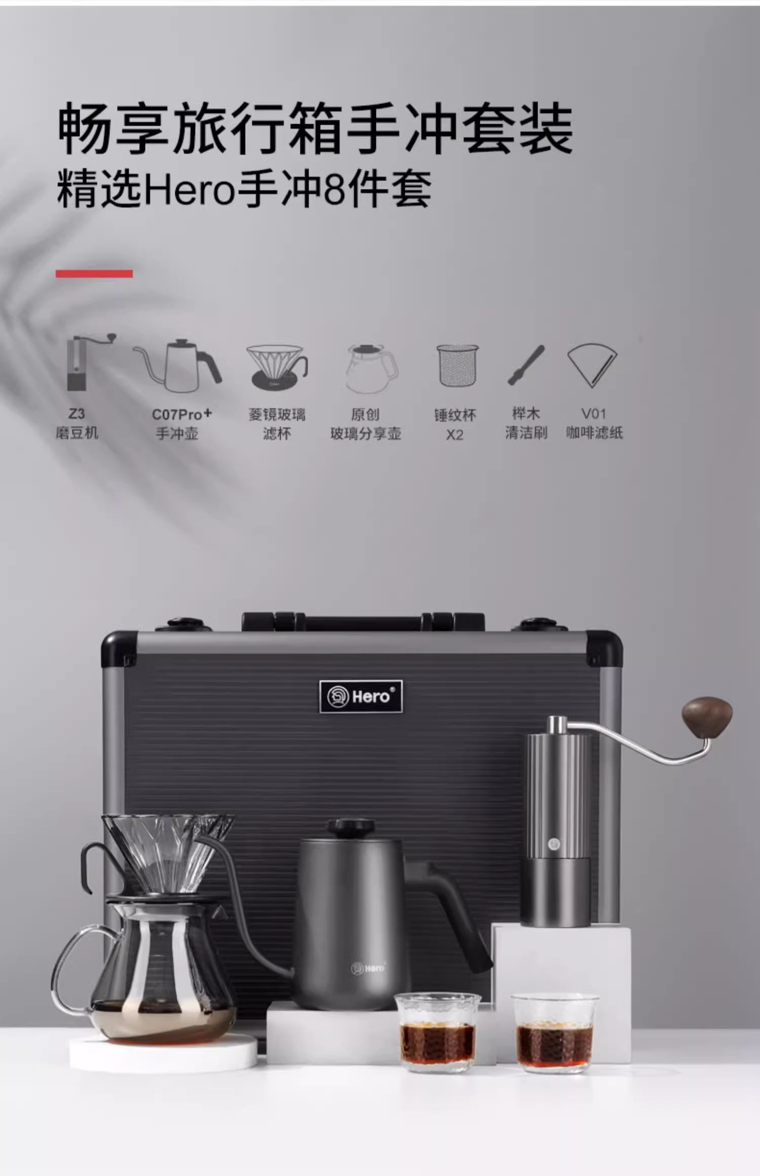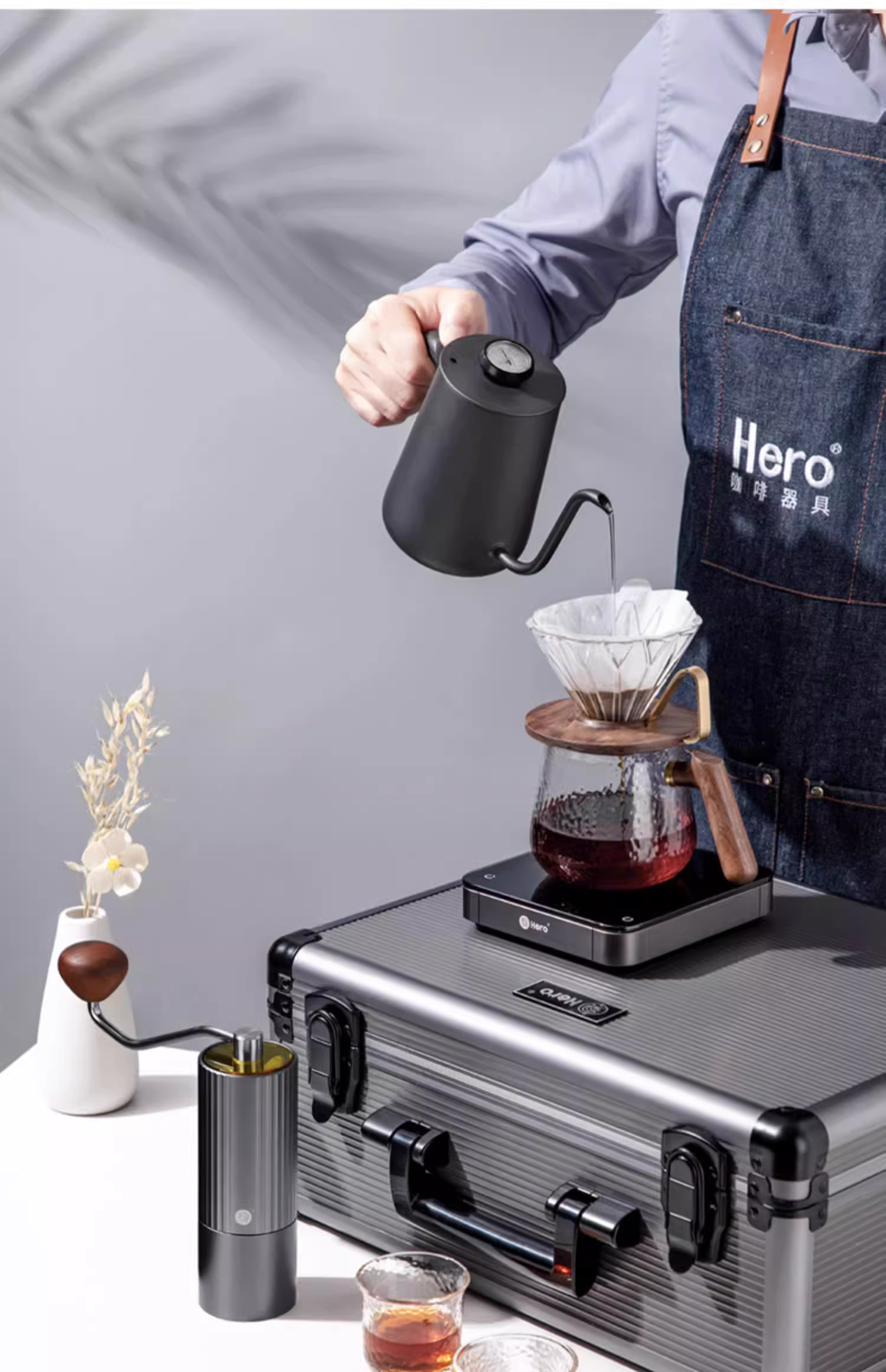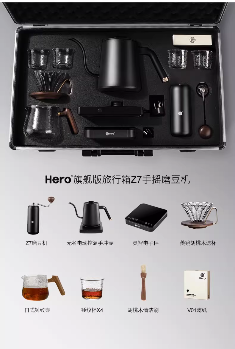 Bộ dụng cụ pha cà phê du lịch Hero, bộ lọc, máy xay, hộp quà tặng, ấm giữ nhiệt, bộ dụng cụ ngoài trời, điều chỉnh nhiệt độ