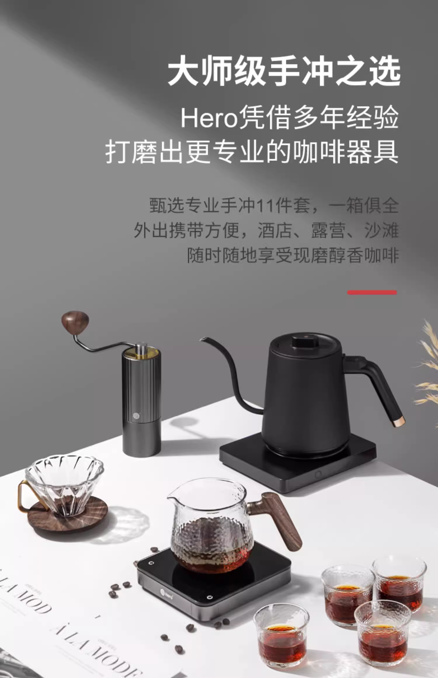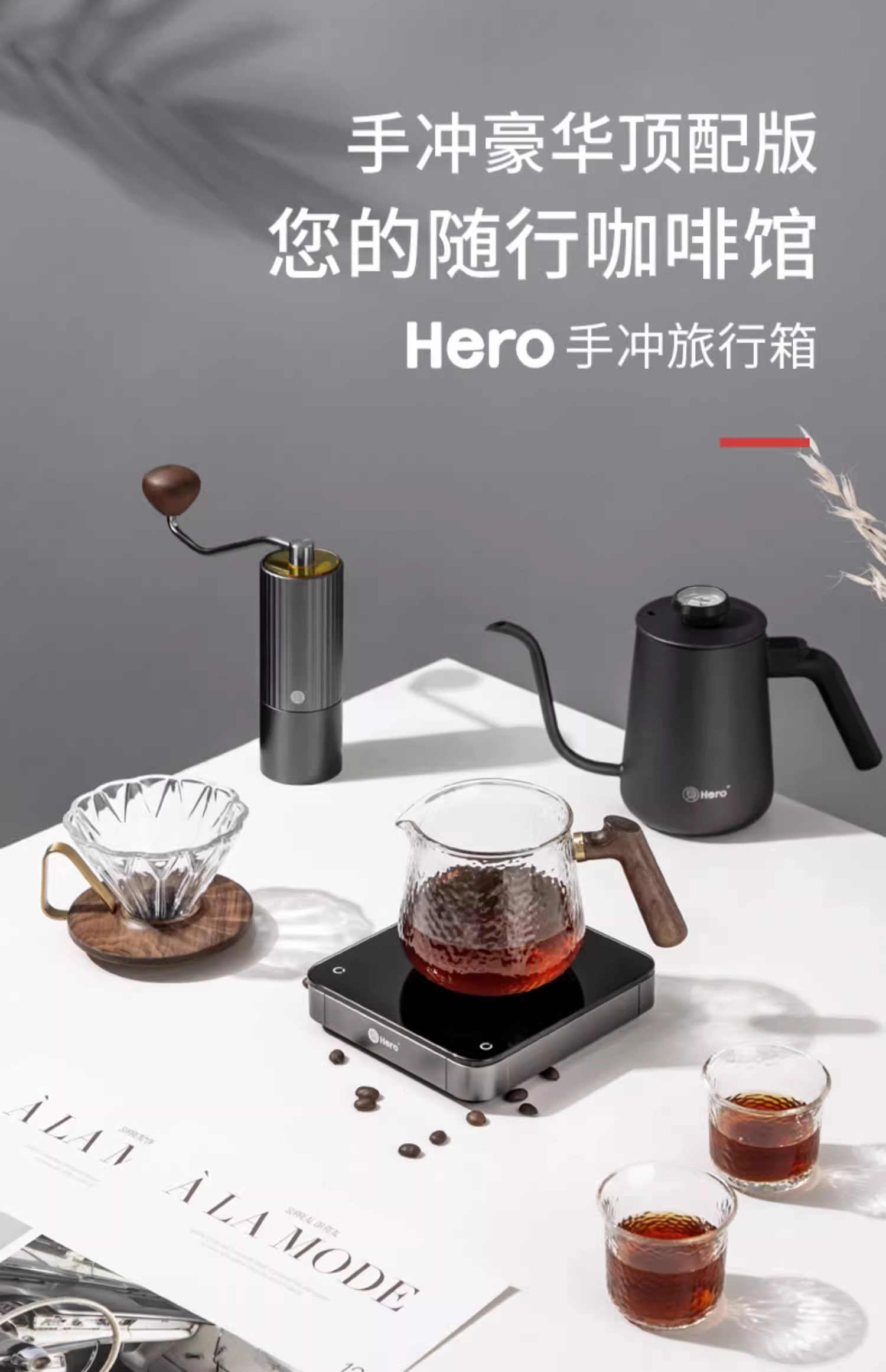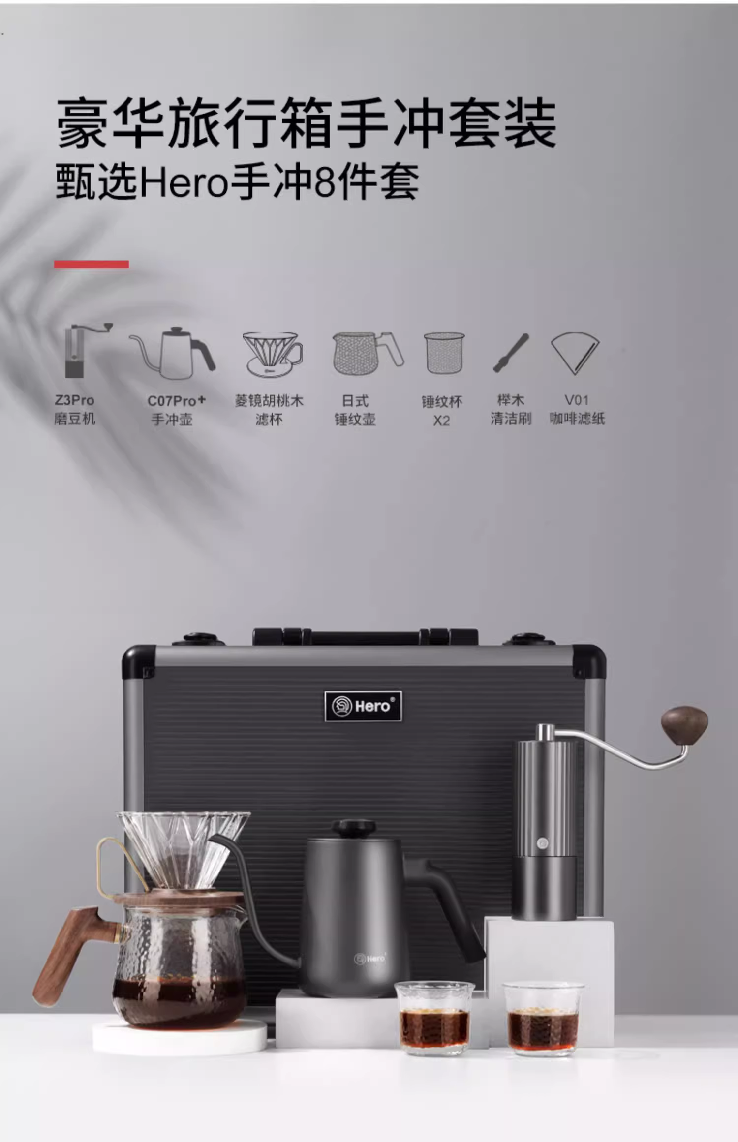 Bộ dụng cụ pha cà phê du lịch Hero, bộ lọc, máy xay, hộp quà tặng, ấm giữ nhiệt, bộ dụng cụ ngoài trời, điều chỉnh nhiệt độ