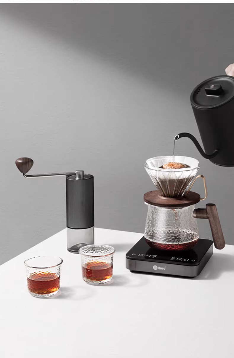 - Bộ lọc cà phê bằng gỗ óc chó Hero Diamond Mirror, phin lọc cà phê thủ công V60, bình chia cà phê, máy xay cà phê cầm tay Taimo