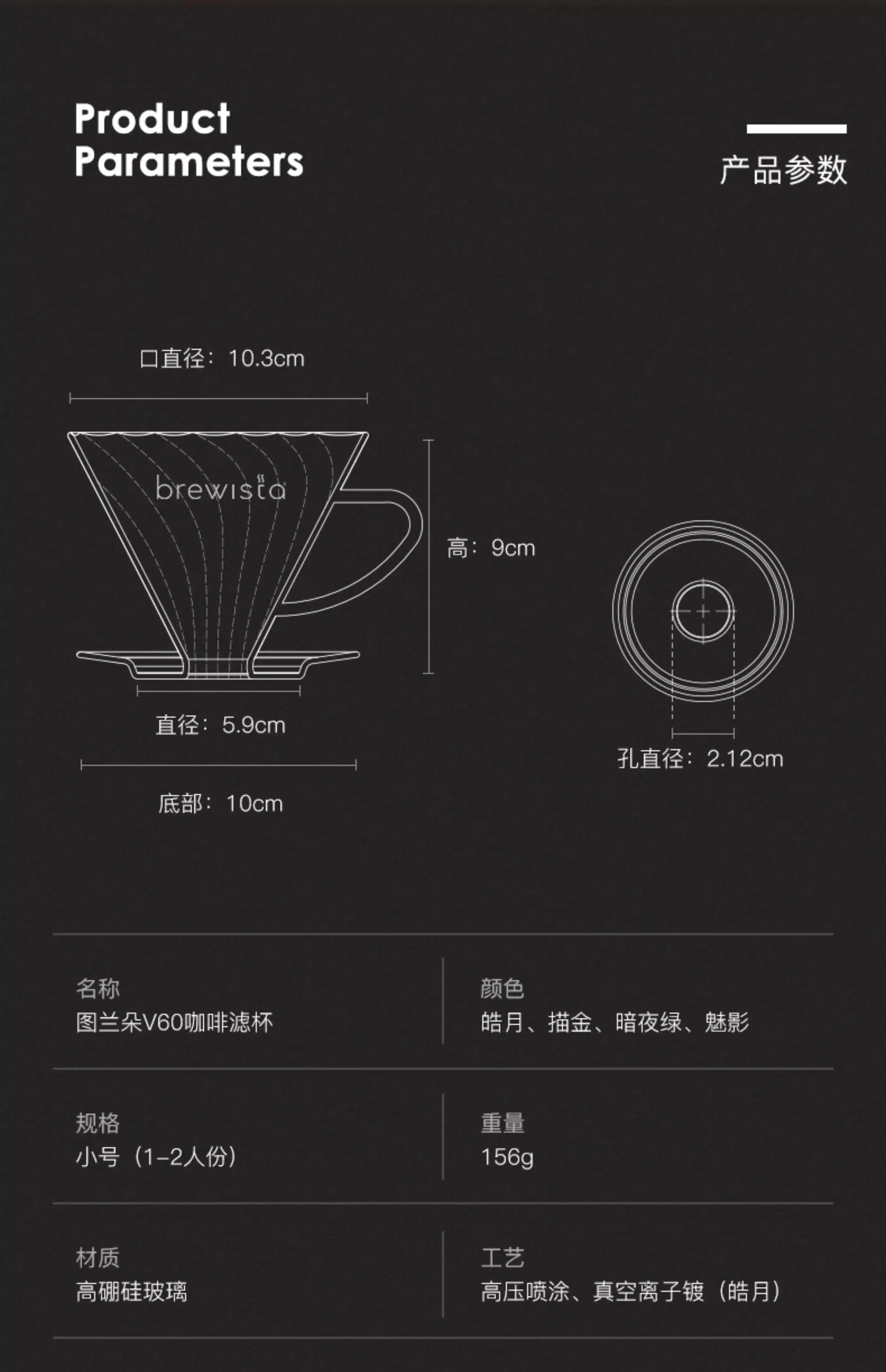 Bộ lọc cà phê pha thủ công Brewista American V60, bộ chia sẻ ly thủy tinh, dòng sản phẩm Pro Shadow Hero