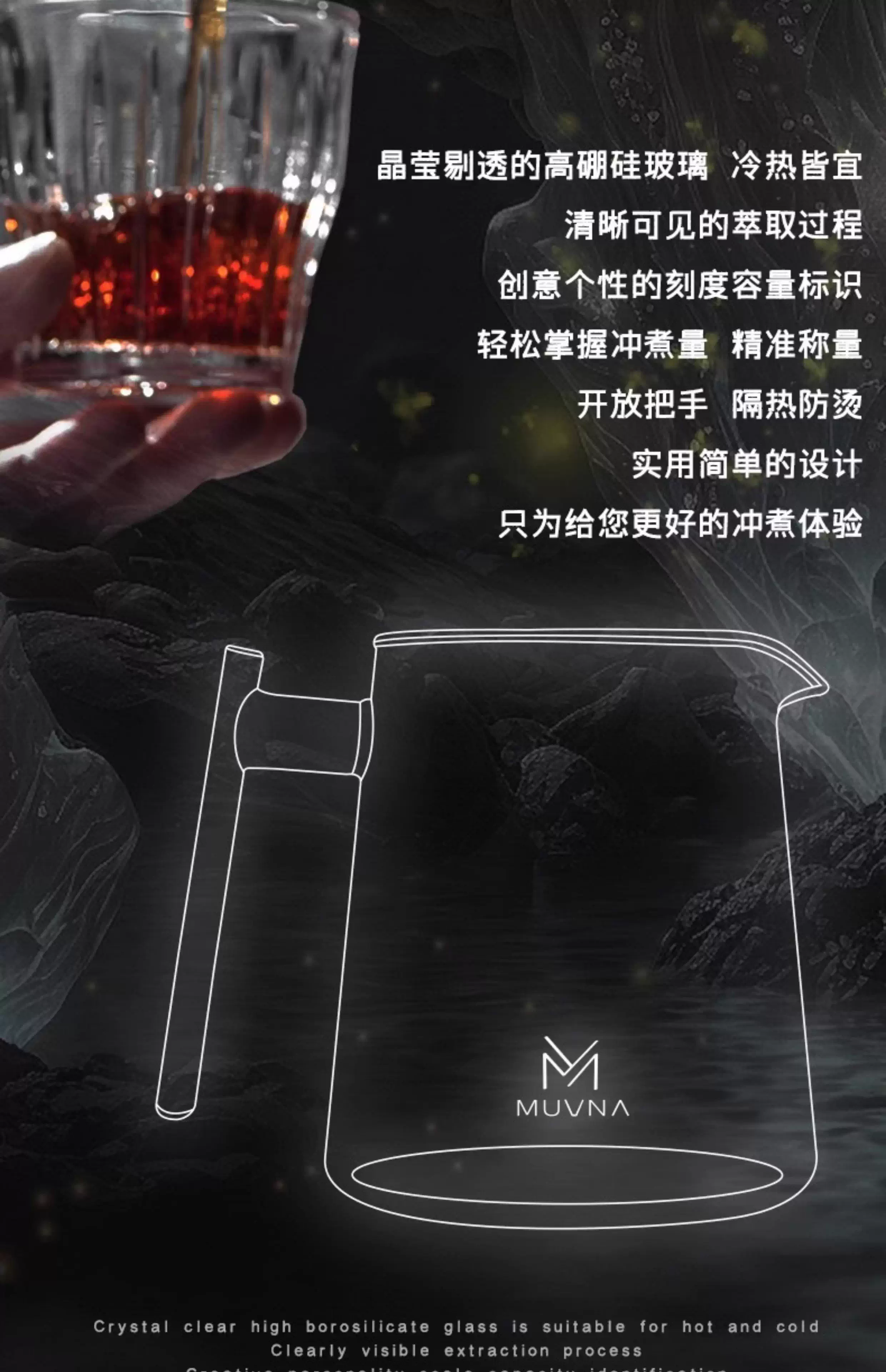 Bộ lọc cà phê thủ công MUVNA V60, cốc lọc nhỏ giọt có vạch chia độ, cốc pha cà phê kiểu Fair Cup