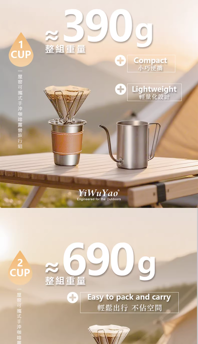 Bộ pha cà phê thủ công ngoài trời Yiyu Yao dành cho cắm trại và du lịch, cốc lọc V60, ấm pha cà phê thủ công, kiểu lọc nhỏ giọt, tương tự như DRIVER