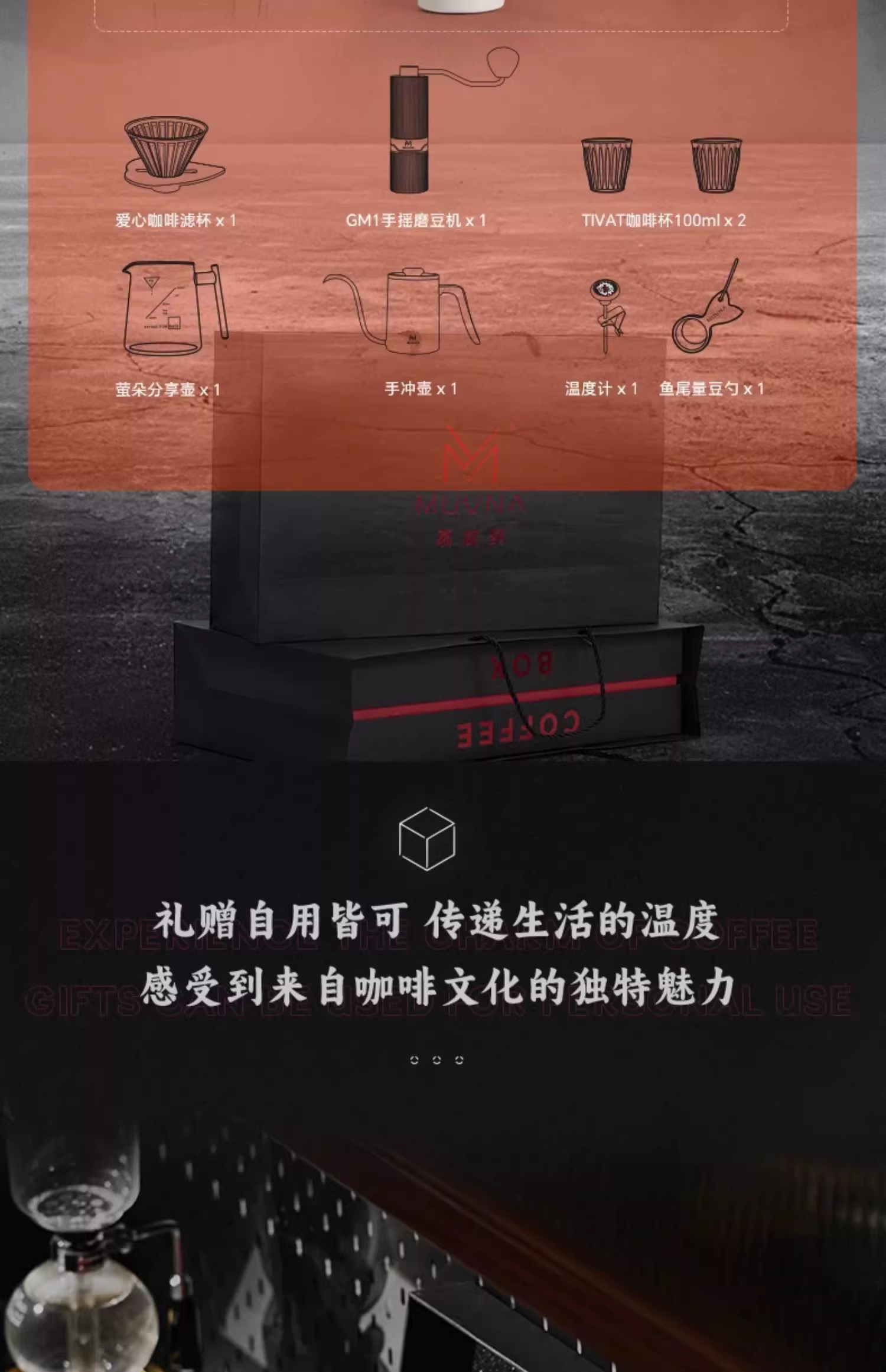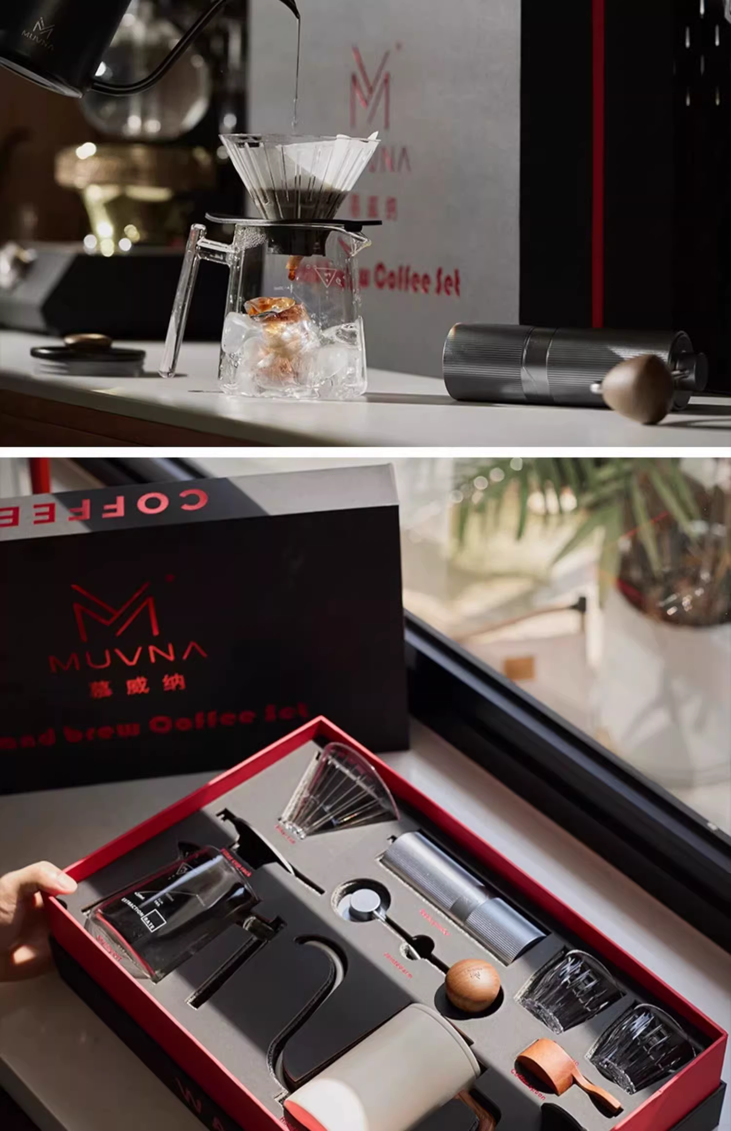 Bộ quà tặng pha cà phê thủ công Muvna, bộ lọc nhỏ giọt gia dụng, máy xay cà phê, bộ pha cà phê thủ công, bộ dụng cụ pha cà phê hero