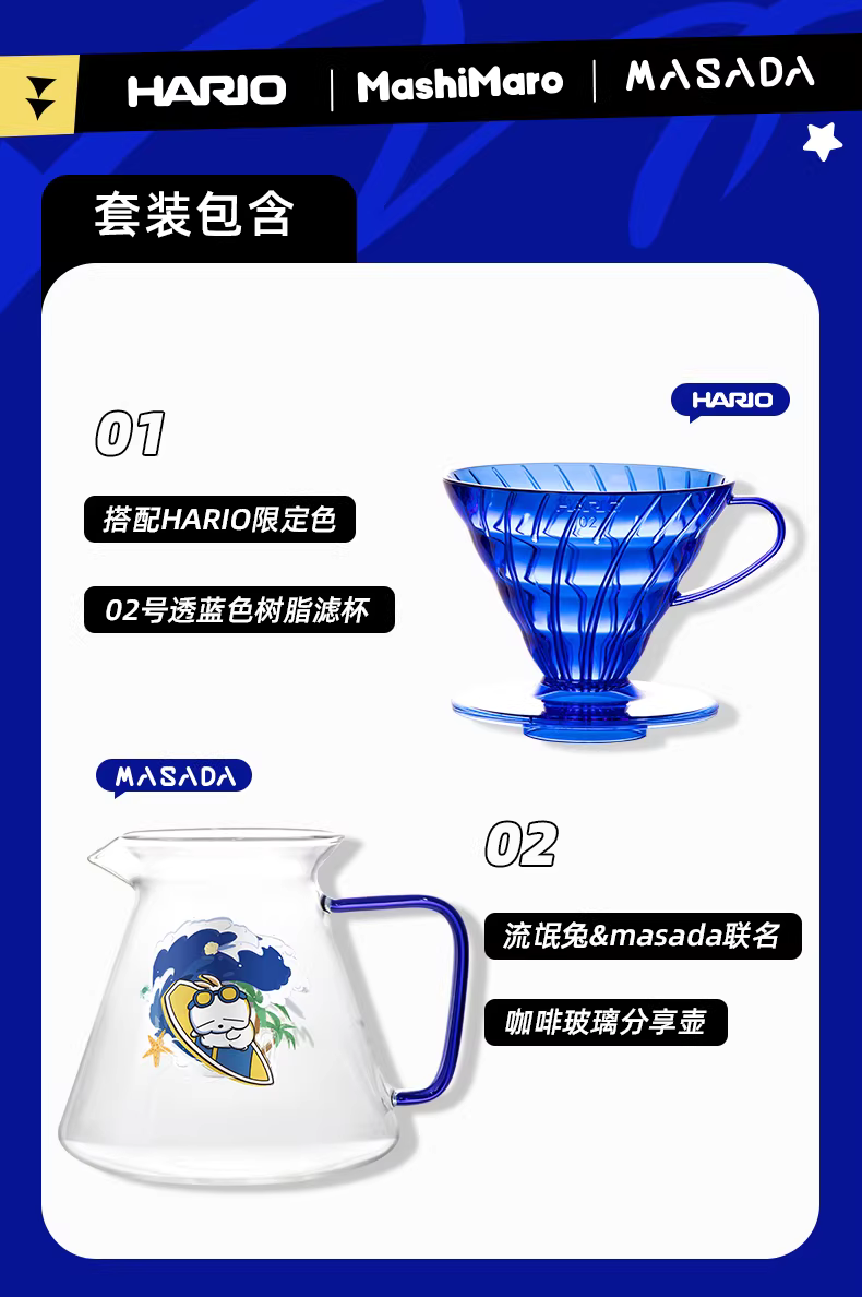 Bộ sản phẩm hợp tác HARIO Rogue Rabbit V60 Bộ lọc cà phê nhỏ giọt Hộp quà tặng MashiMaro Sharing Pot