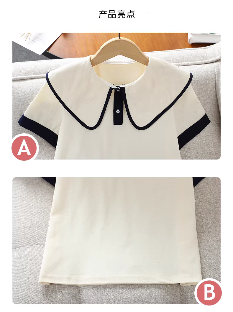 - Bộ trang phục hè cho bé gái 2025 kiểu mới, cổ búp bê, tay ngắn, thời trang phong cách Hàn Quốc, bộ hai mảnh hợp xu hướng mùa hè