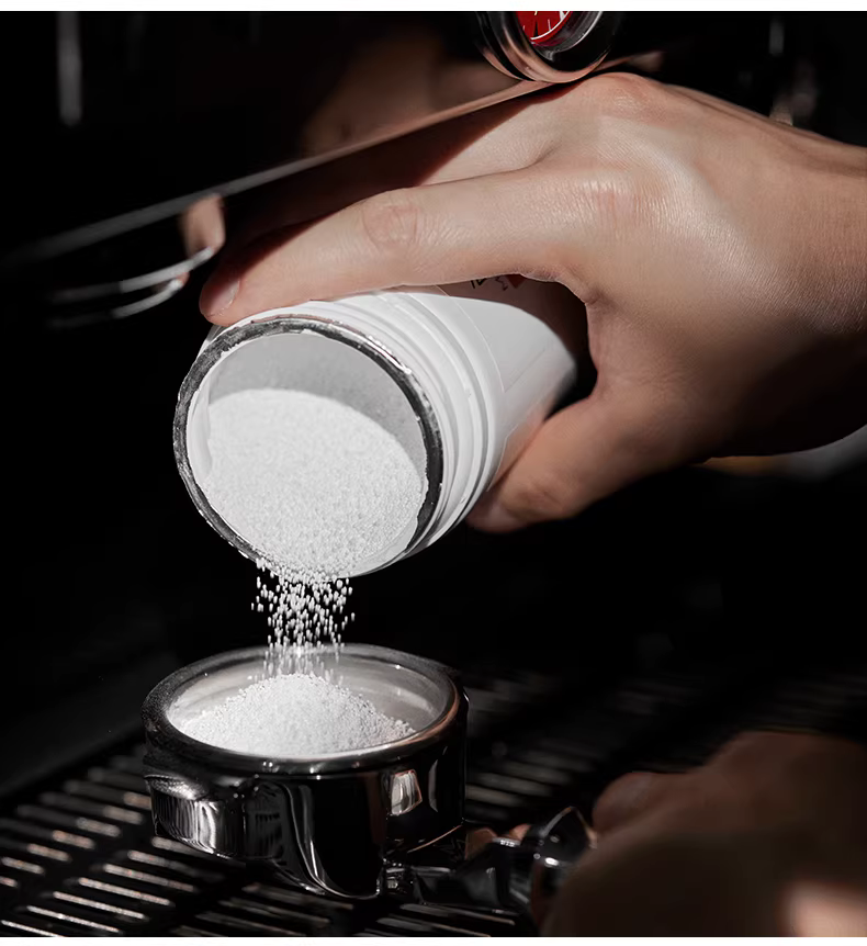 - Bột vệ sinh MUVNA để làm sạch đầu pha của máy pha cà phê kiểu bát mù, vệ sinh máy pha cà phê espresso bán tự động 58mm.