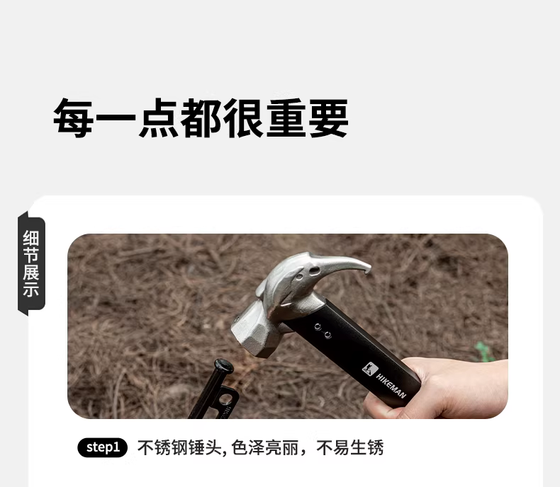 Búa cắm trại ngoài trời đa năng, dụng cụ đa năng, búa tán dù, búa rút đinh, đầu đồng, búa thép không gỉ