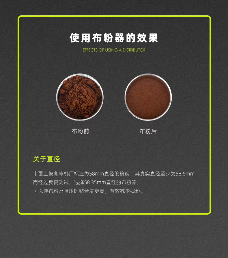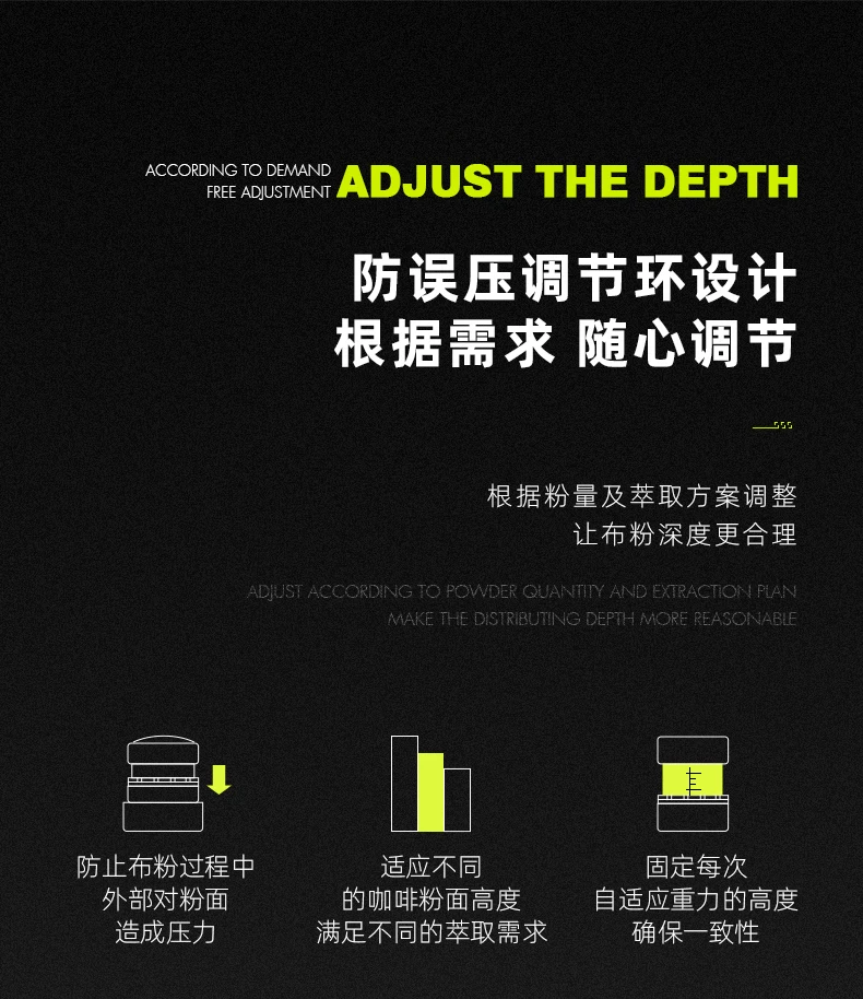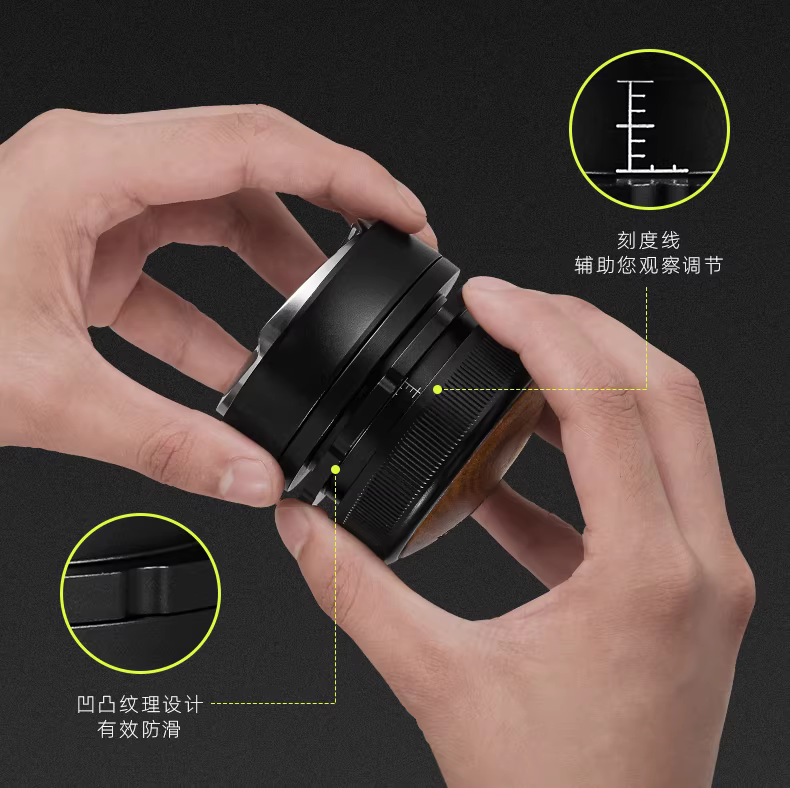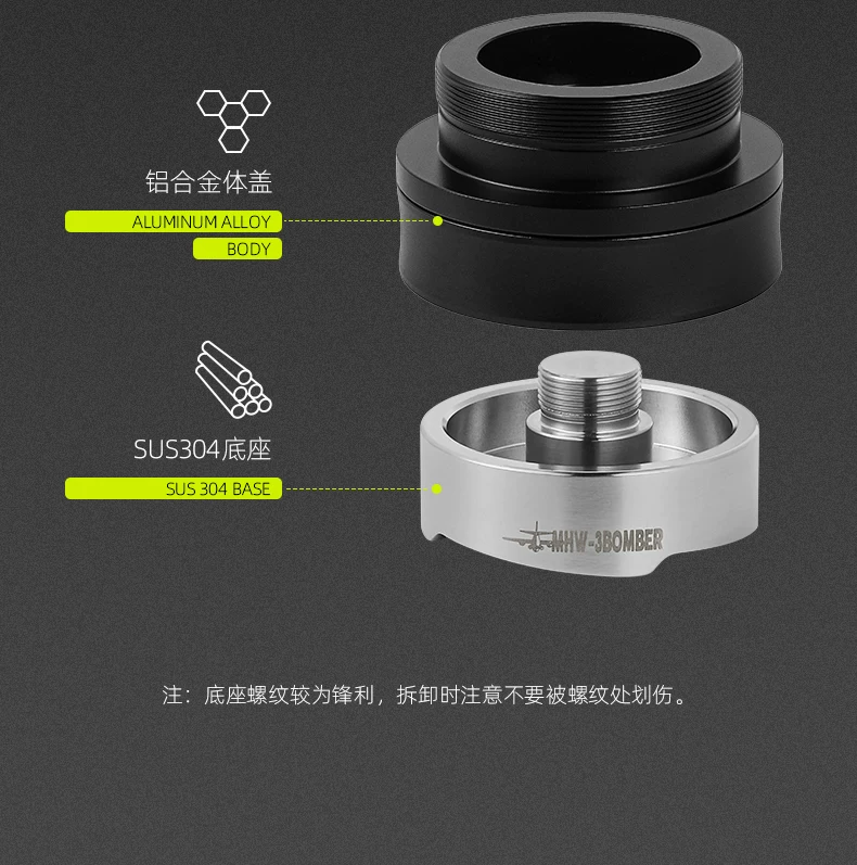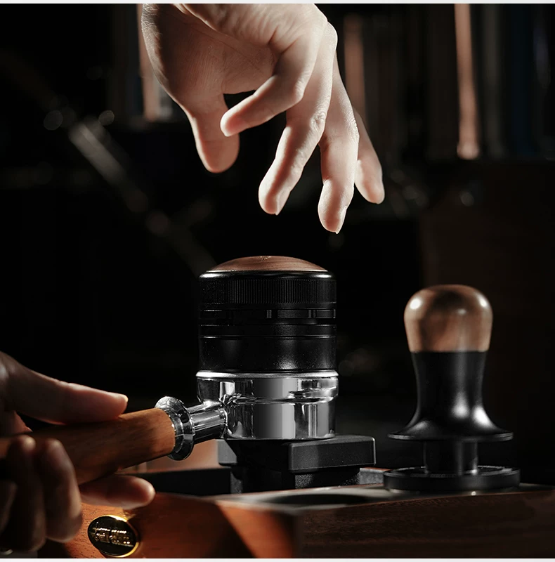 Búa nén cà phê Ý 58mm Bomber MHW Hurricane Gravity Powder Distributor với chức năng điều chỉnh độ cao thích ứng