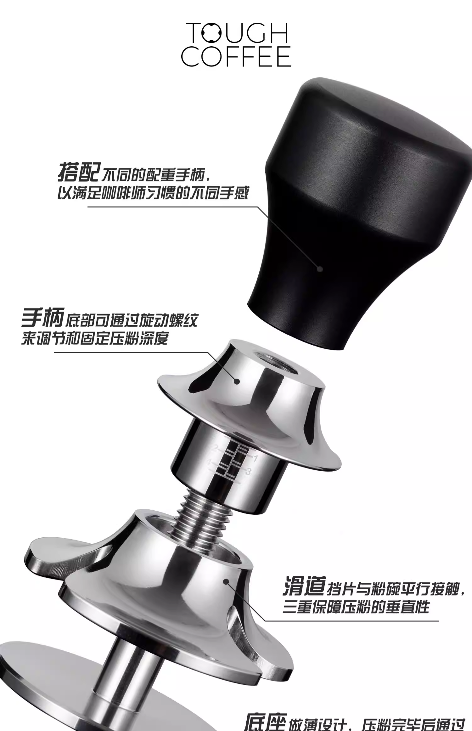 Cà phê cứng đầu như một dụng cụ nén: Búa bột lực không đổi, điều chỉnh độ lệch áp lực, kiểu bom 58mm.