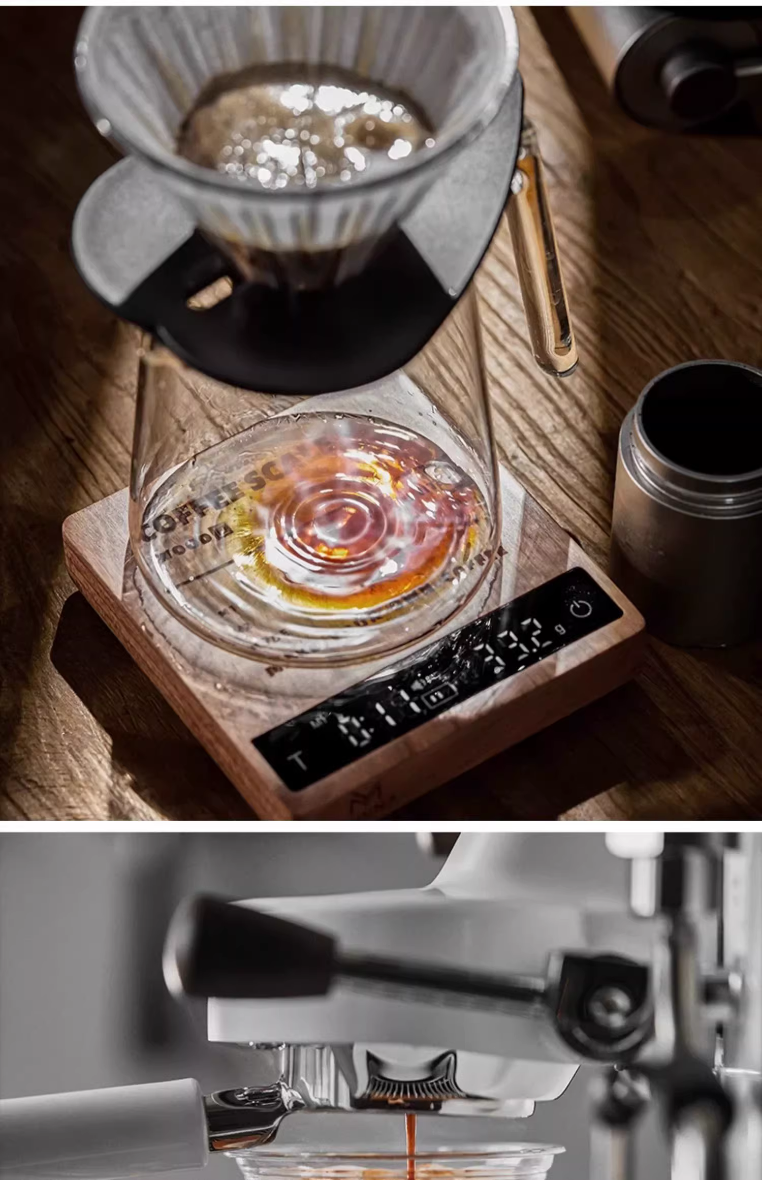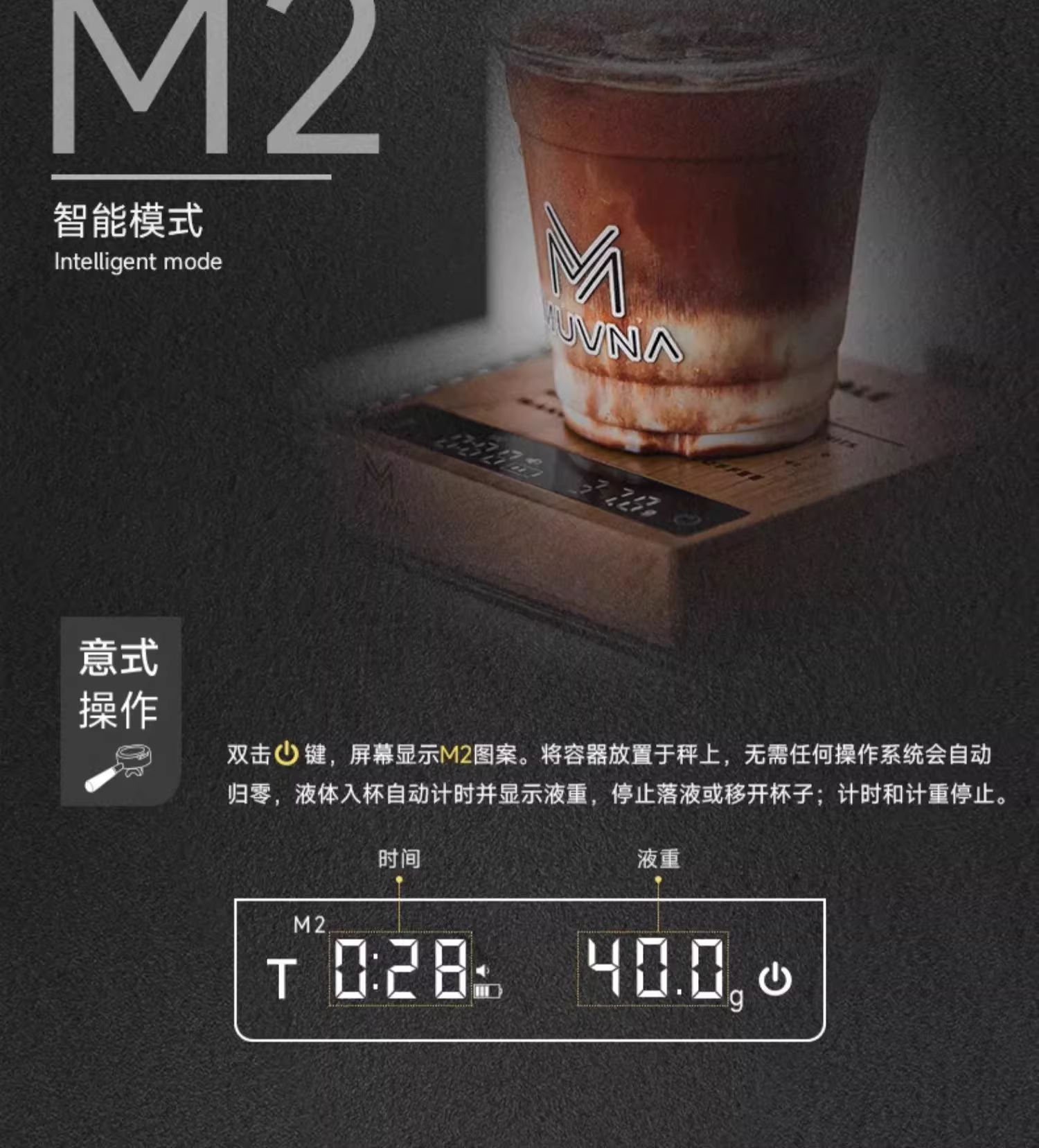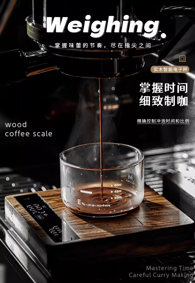 - Cân điện tử MUVNA, gỗ nguyên khối, dùng cho cà phê espresso pha thủ công, hạt cà phê và bột, chuyên dùng để đo thời gian và cân chính xác, hình khối nhỏ.