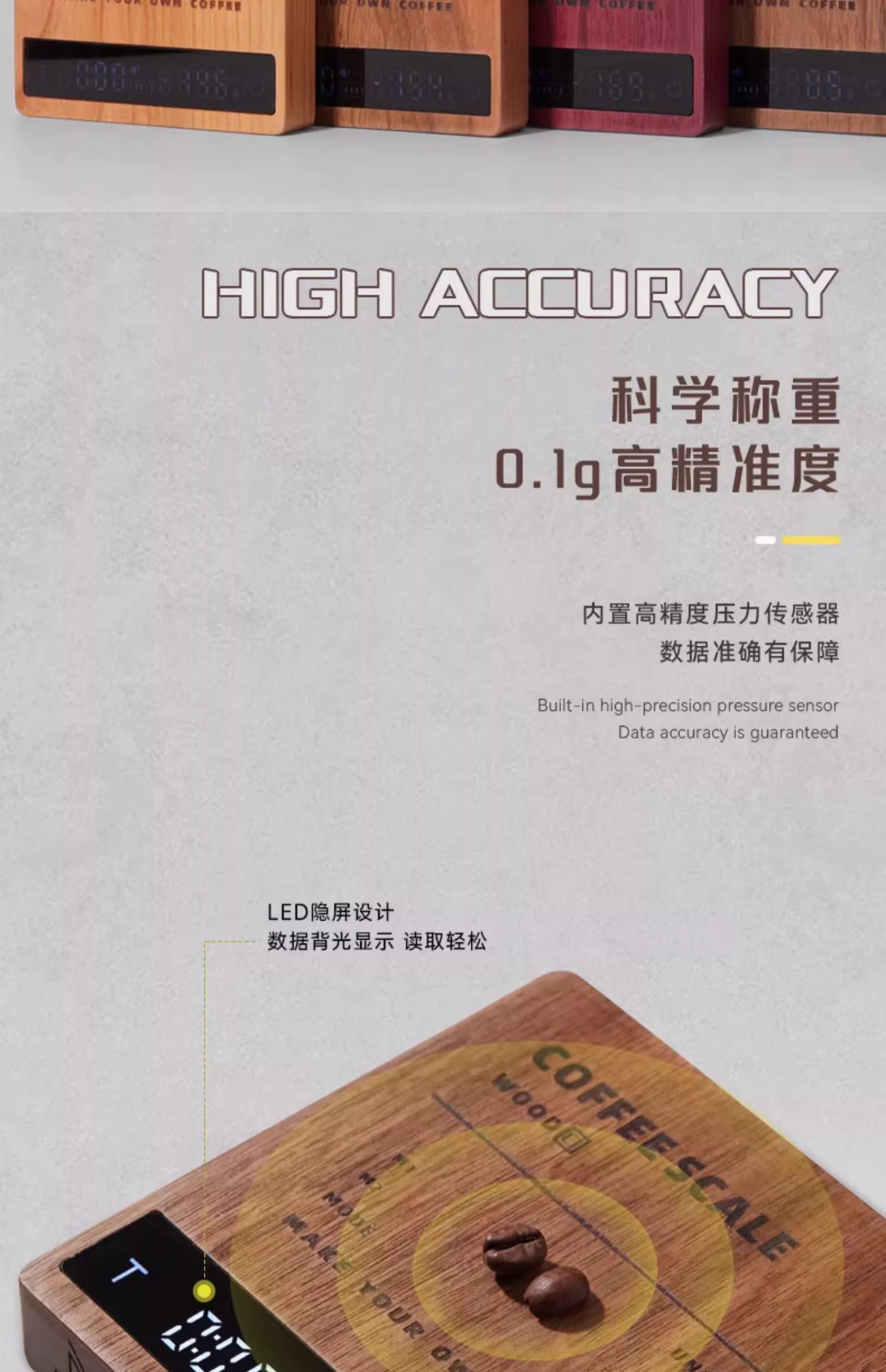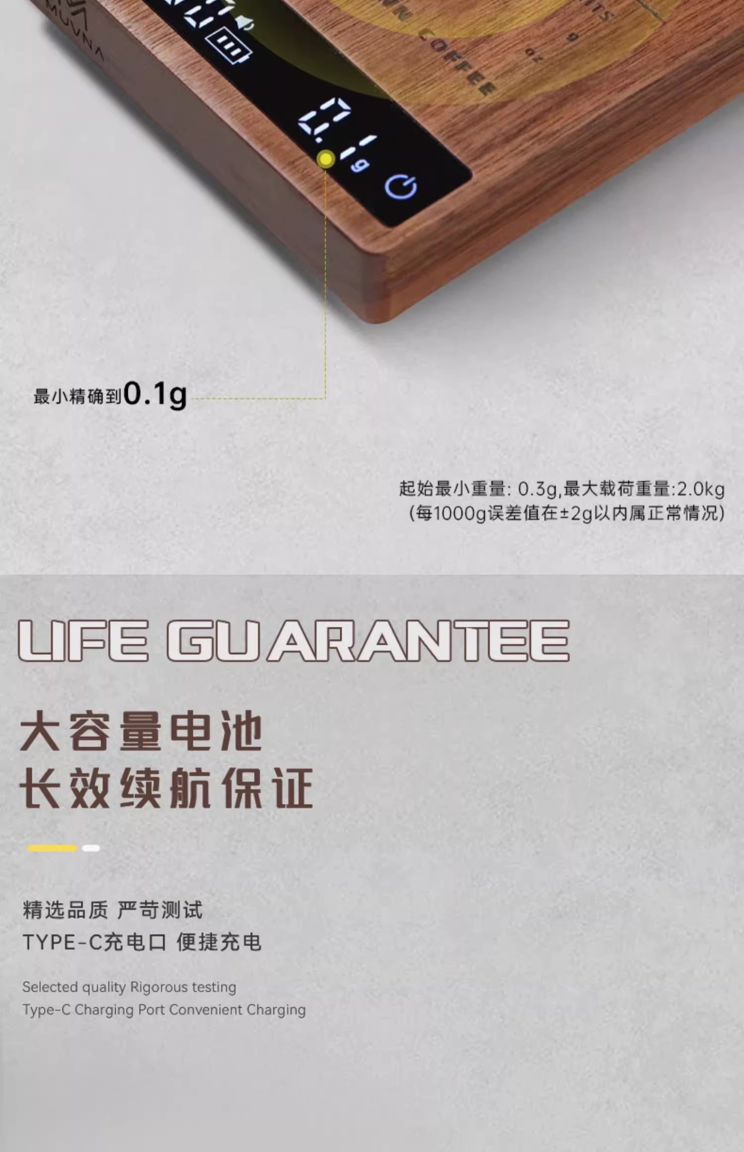 Cân điện tử MUVNA, gỗ nguyên khối, dùng cho cà phê espresso pha thủ công, hạt cà phê và bột, chuyên dùng để đo thời gian và cân chính xác, hình khối nhỏ.