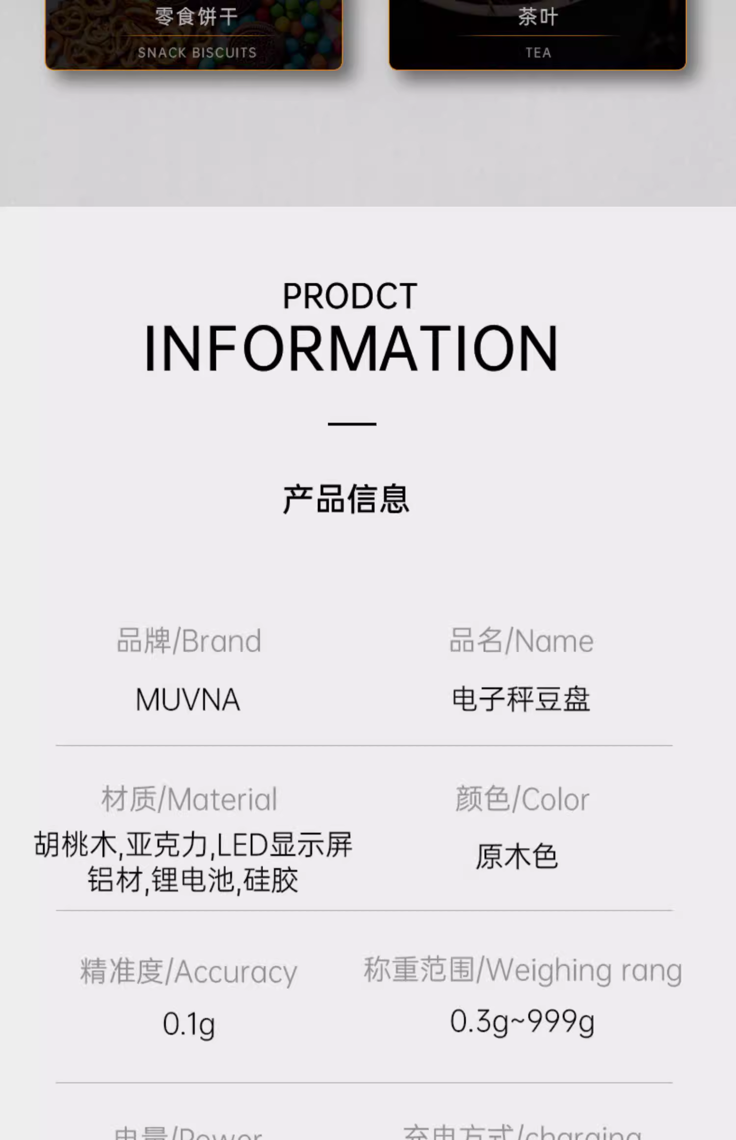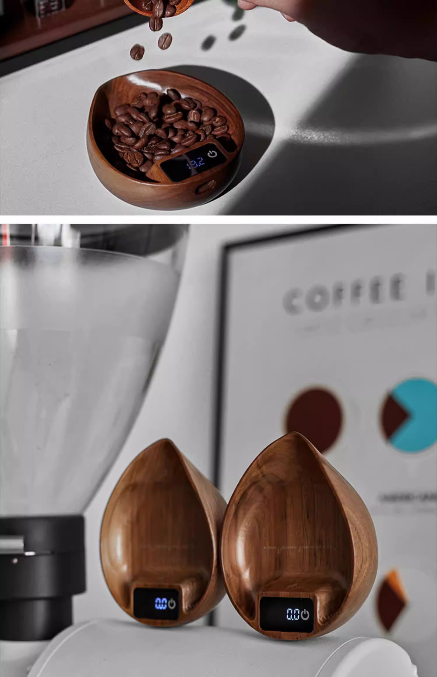 - Cân điện tử MUVNA với khay gỗ óc chó để pha cà phê espresso thủ công, khay hiển thị trọng lượng để nướng bánh và định lượng