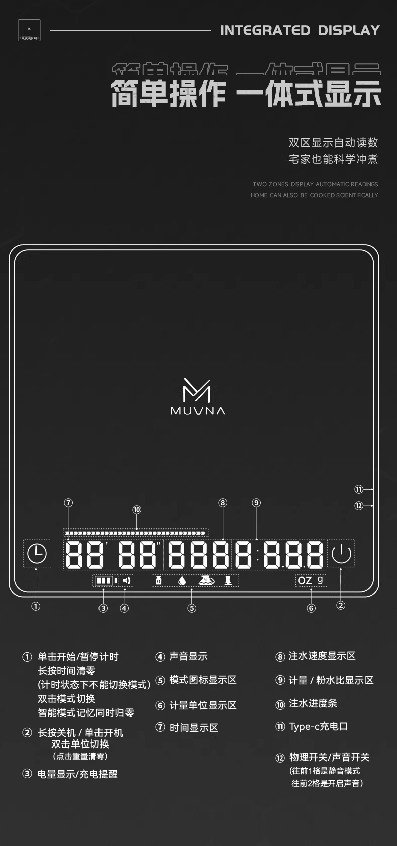 - Cân điện tử MUVNA Zero-G, cân pha cà phê kiểu Ý, mini, sạc lại được, có chức năng hẹn giờ