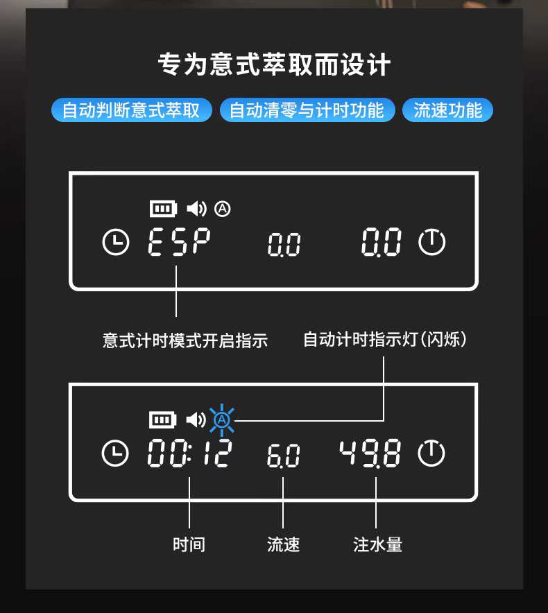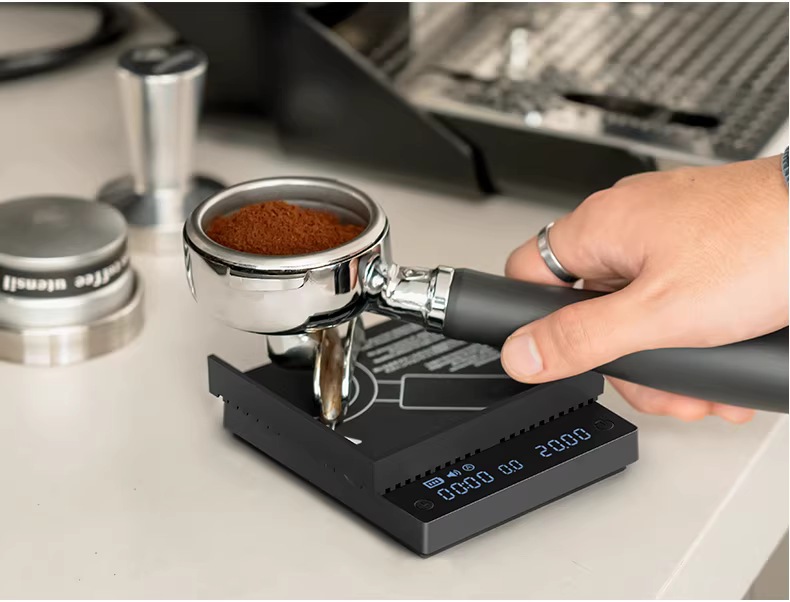 Cân điện tử pha cà phê Taimo Black Mirror MINI, đồng hồ hẹn giờ pha cà phê kiểu Ý, cân thông minh mini, đo tốc độ dòng chảy, hình khối nhỏ, kiểu dáng cong