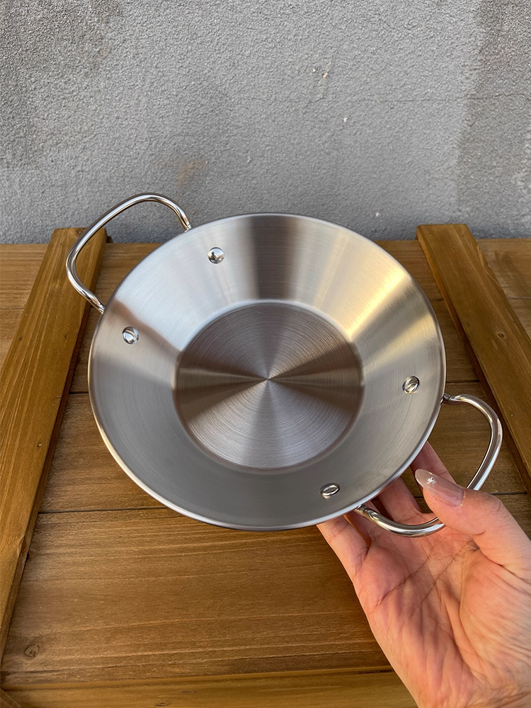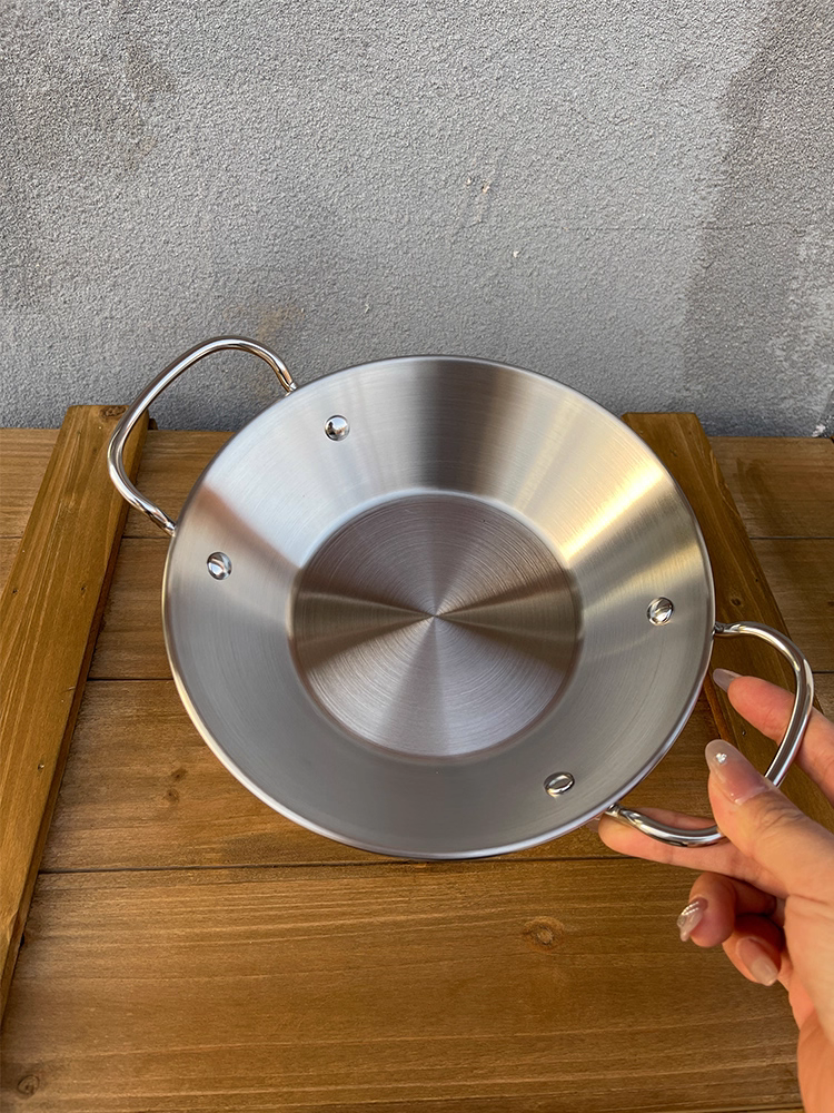Chảo đa năng Little Monster bằng thép không gỉ, dùng được cho món Paella Tây Ban Nha, chiên, xào, nấu lẩu cay, nướng phô mai, cơm nướng