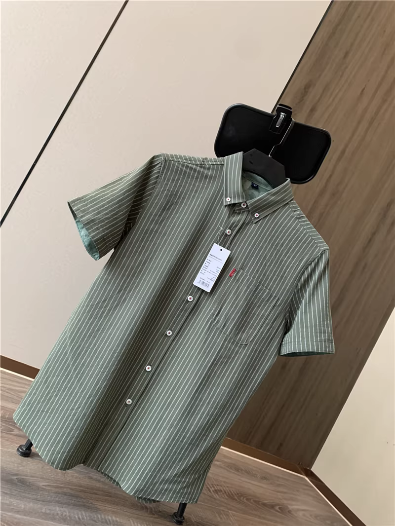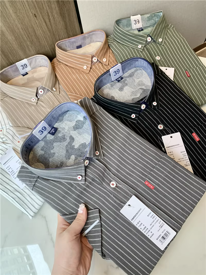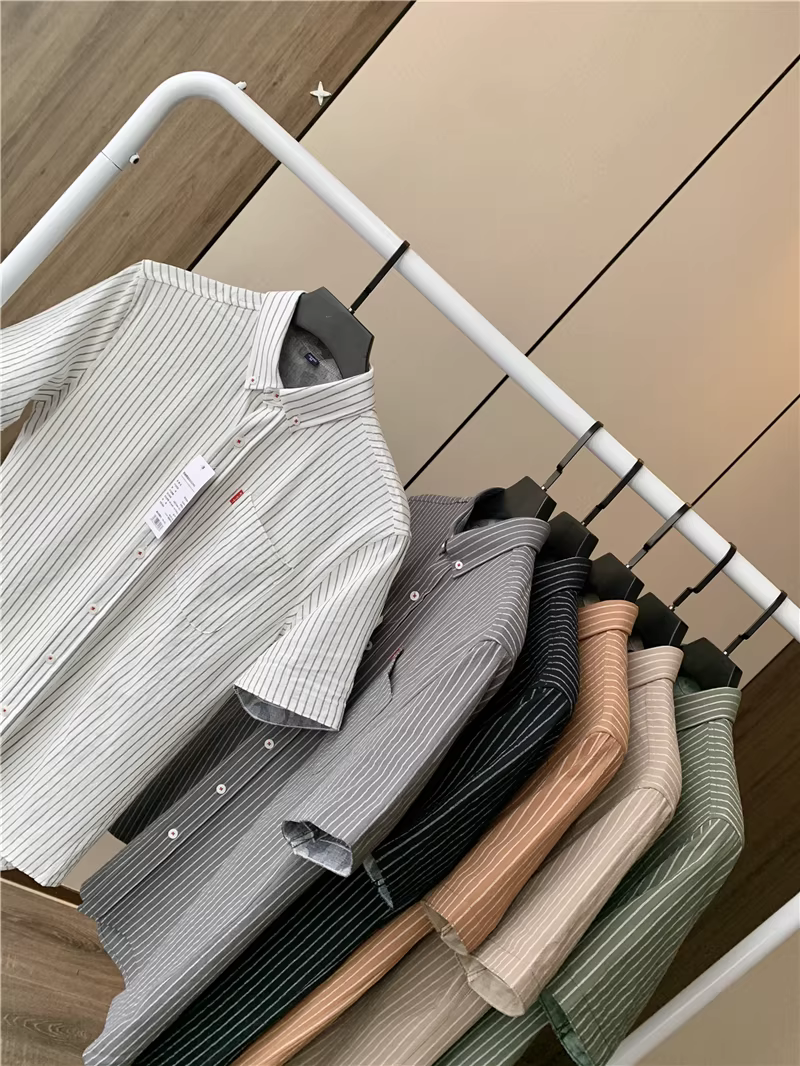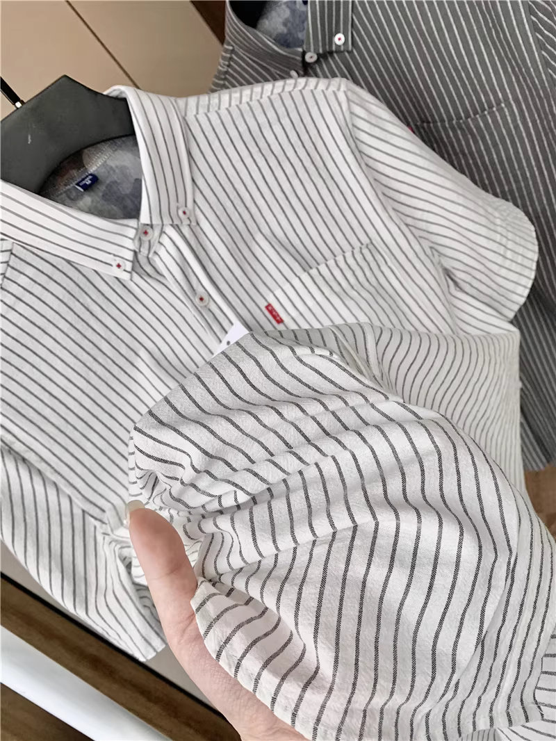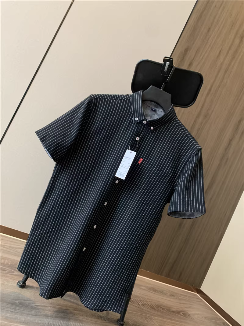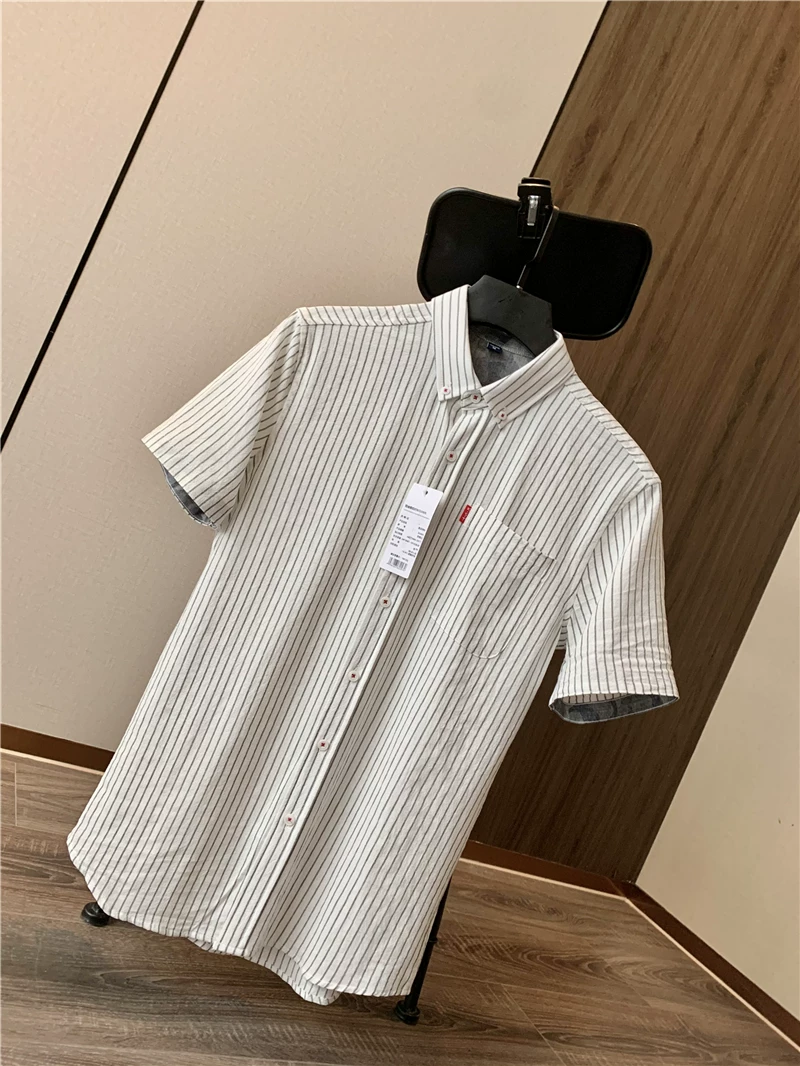 - Chất liệu vải cotton mềm mại kiểu Don Quixote! Sọc dọc nhuộm sợi thanh lịch! Áo sơ mi ngắn tay mùa hè dành cho nam