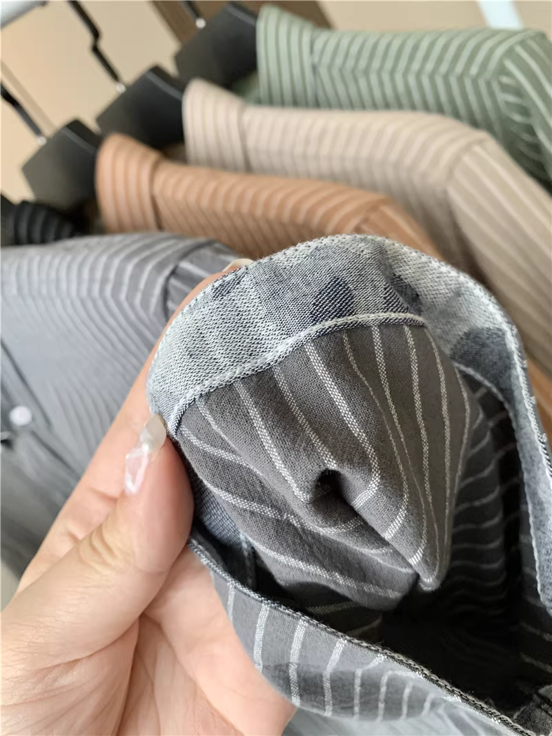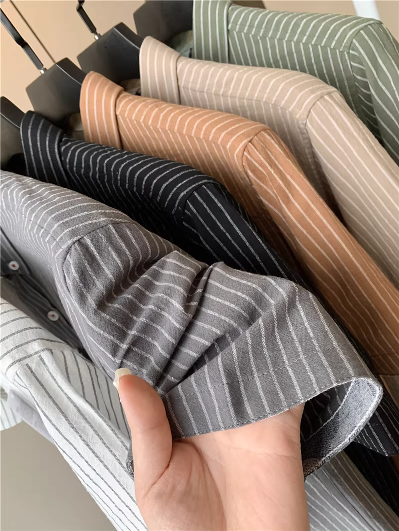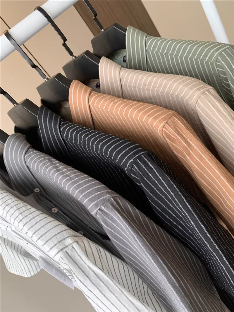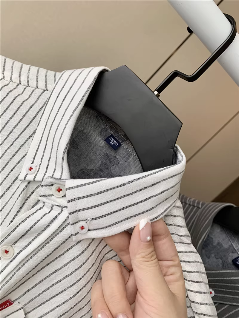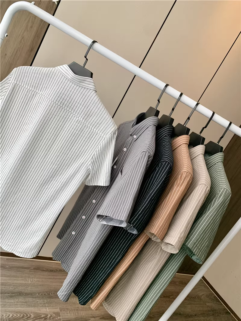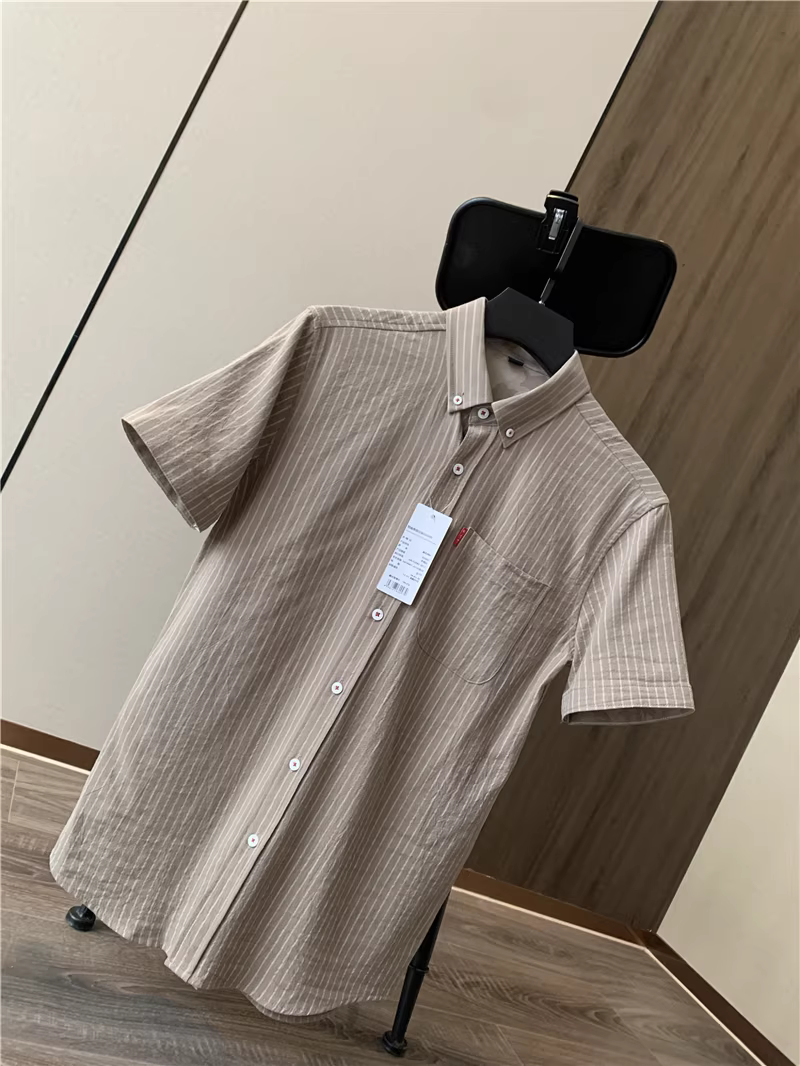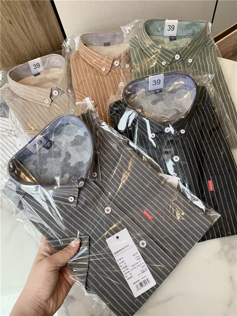 - Chất liệu vải cotton mềm mại kiểu Don Quixote! Sọc dọc nhuộm sợi thanh lịch! Áo sơ mi ngắn tay mùa hè dành cho nam