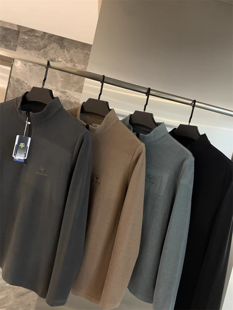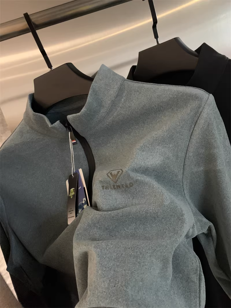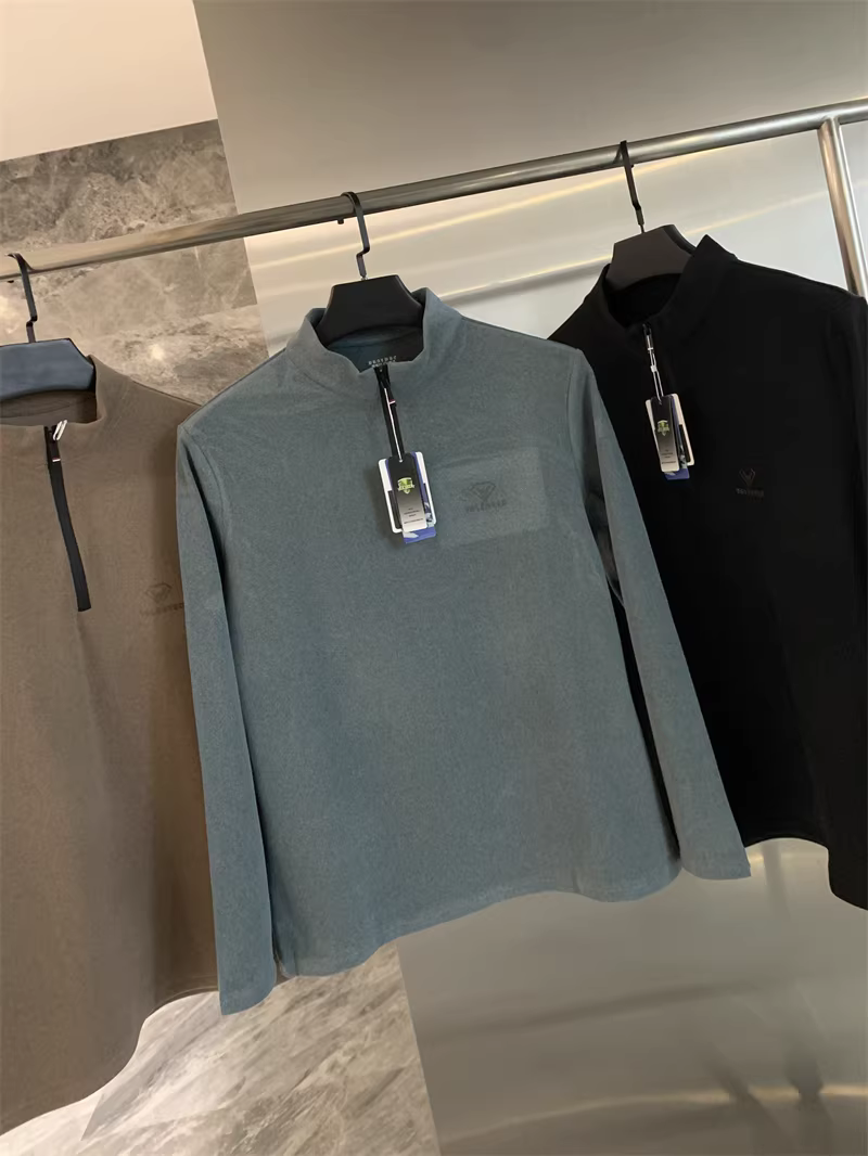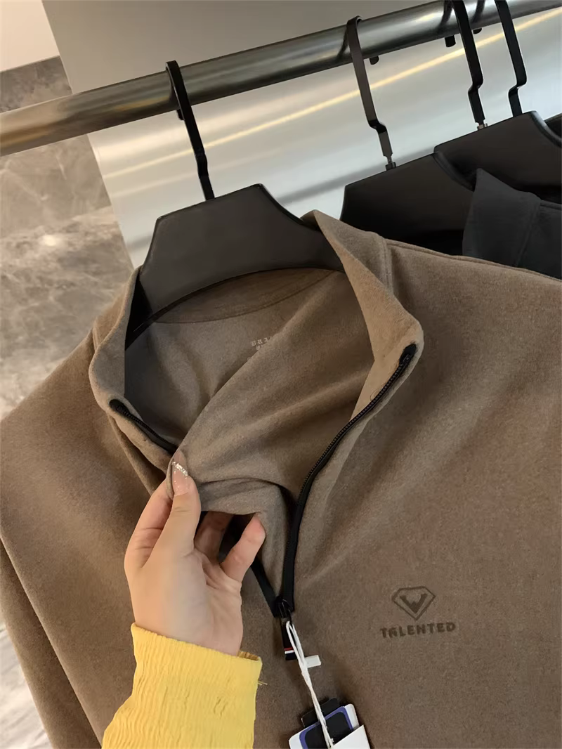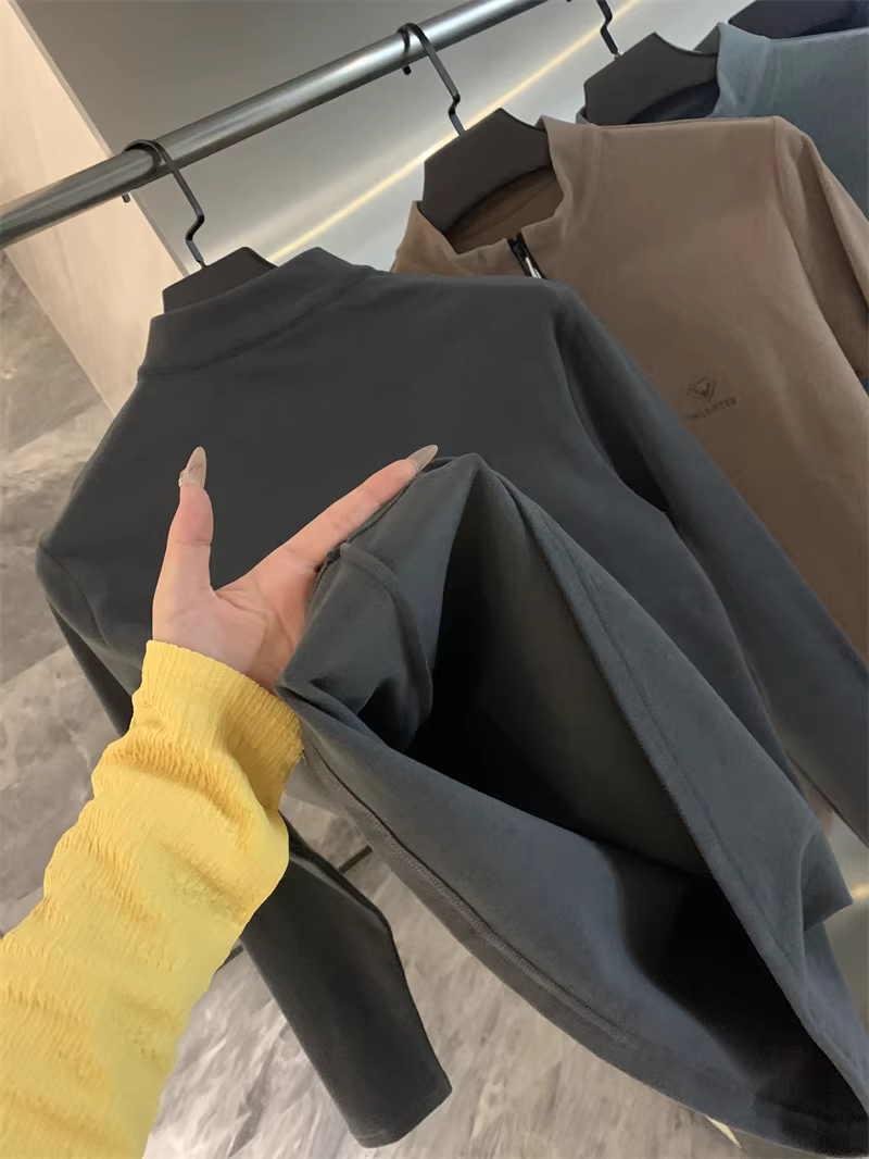 Chất lượng cao cấp như Don Quixote! Áo thun dài tay có cổ đứng, khóa kéo nửa thân, chất liệu nhung Đức tự sưởi ấm hai mặt, ấm áp dành cho nam.