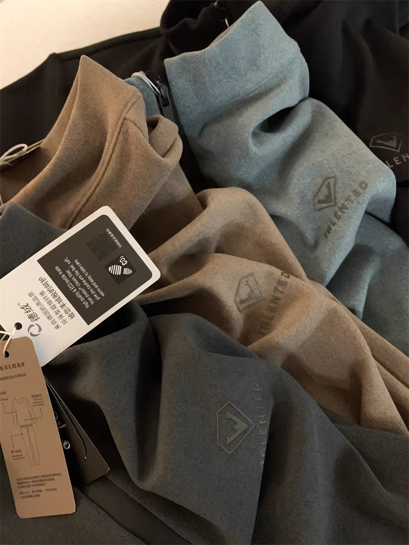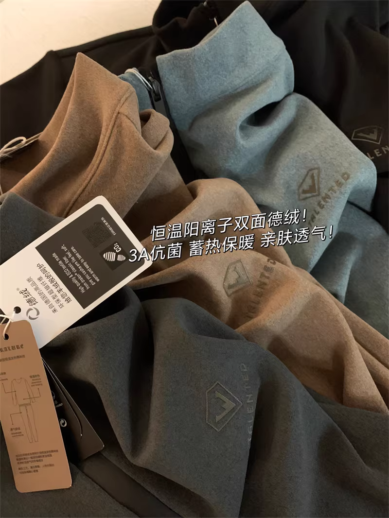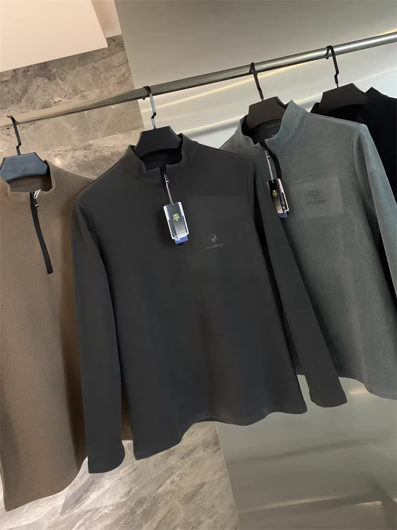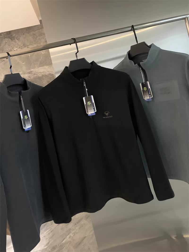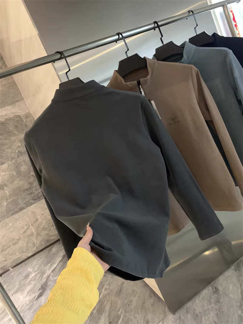 Chất lượng cao cấp như Don Quixote! Áo thun dài tay có cổ đứng, khóa kéo nửa thân, chất liệu nhung Đức tự sưởi ấm hai mặt, ấm áp dành cho nam.