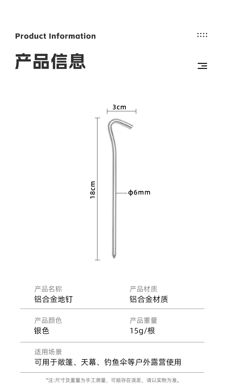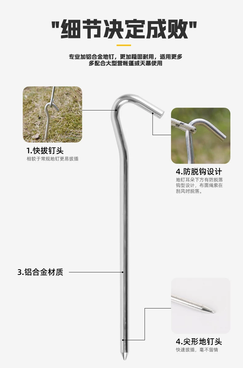 - Chốt đất bằng hợp kim nhôm ngoài trời để dựng lều và mái che, chốt cố định mở rộng 18CM, chốt chống gió, phụ kiện siêu nhẹ.