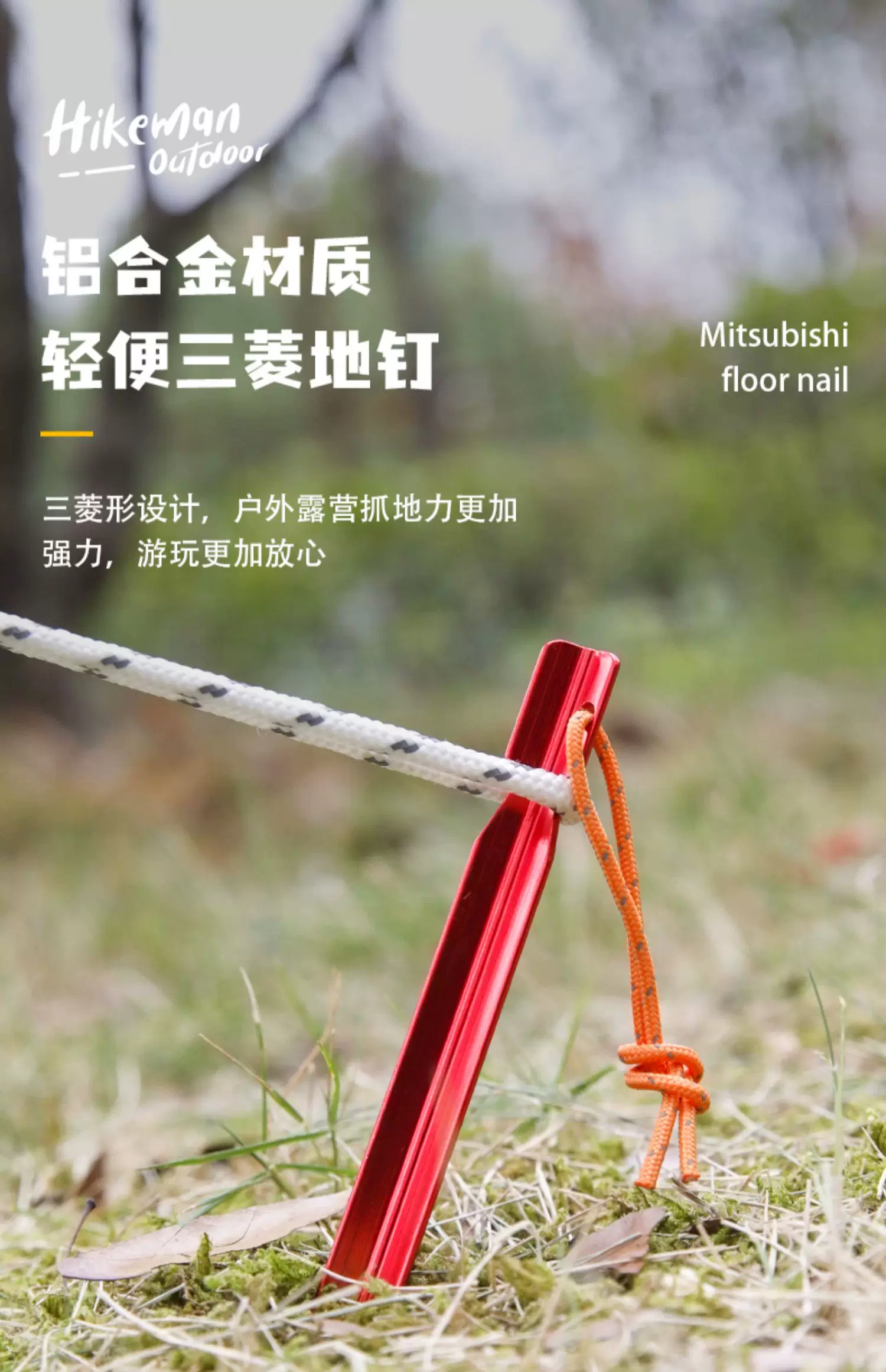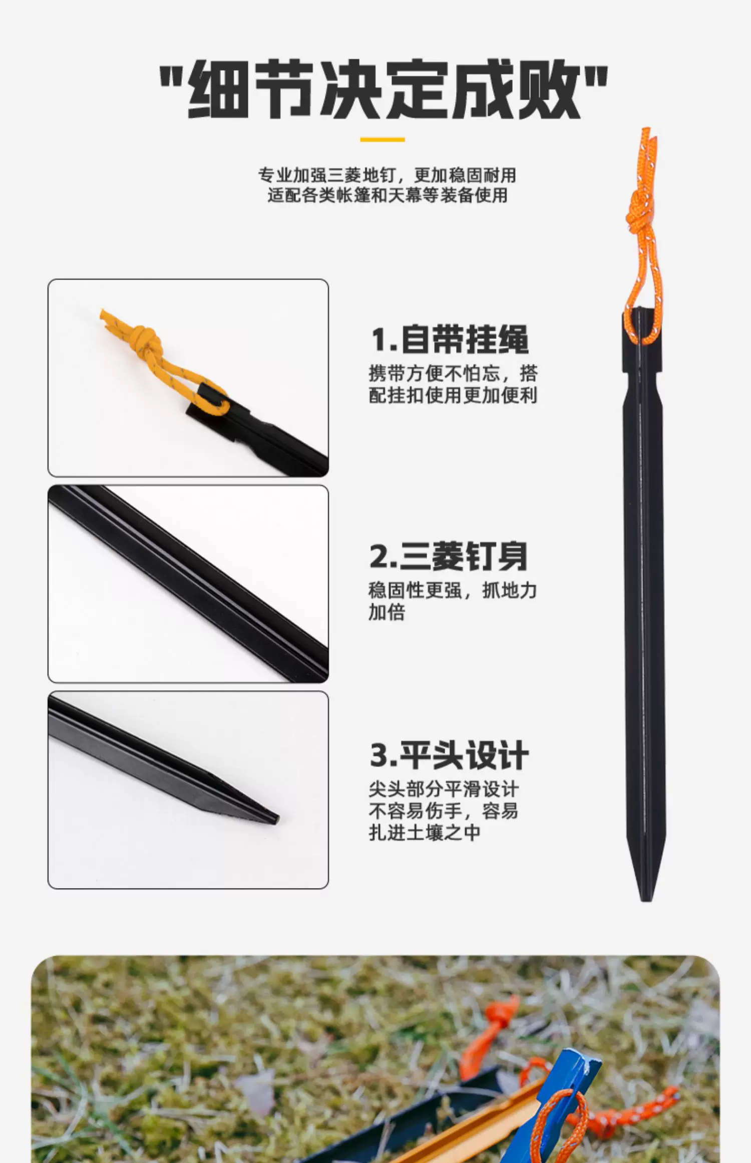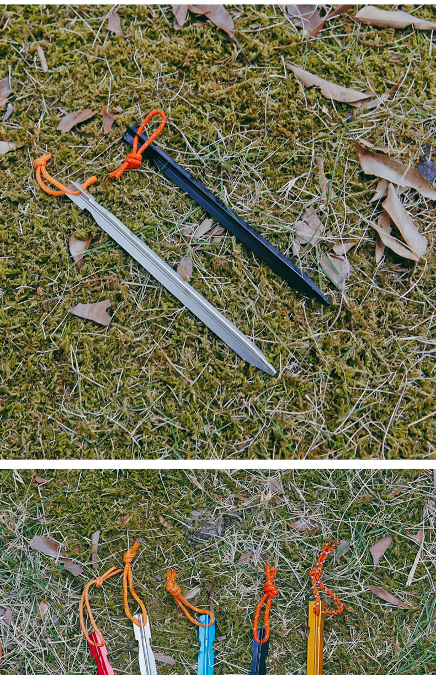 - Chốt đất hình tam giác bằng hợp kim nhôm siêu nhẹ ngoài trời dùng cho lều bạt cắm trại, chốt chống gió được gia cố 18cm có dây