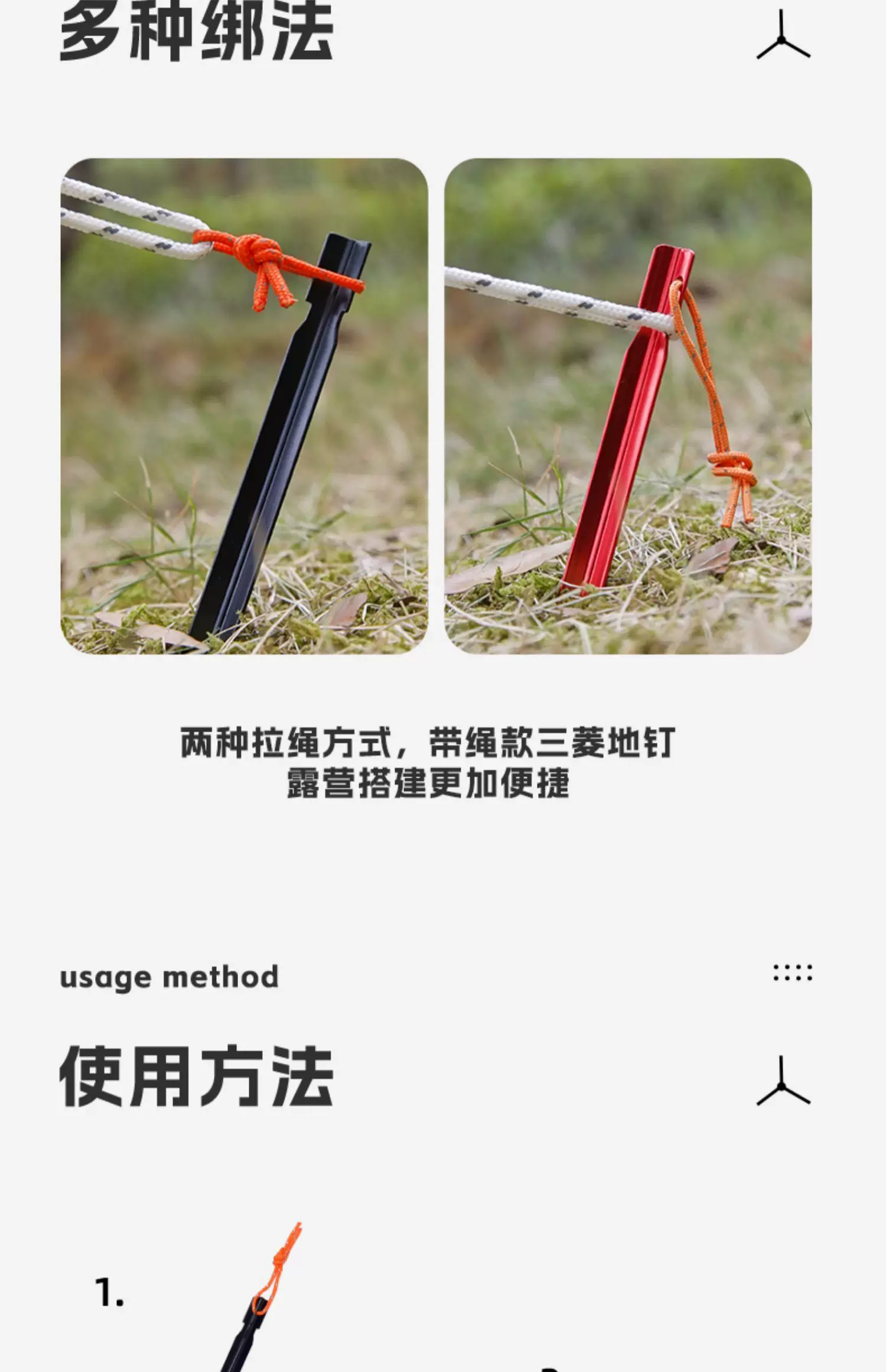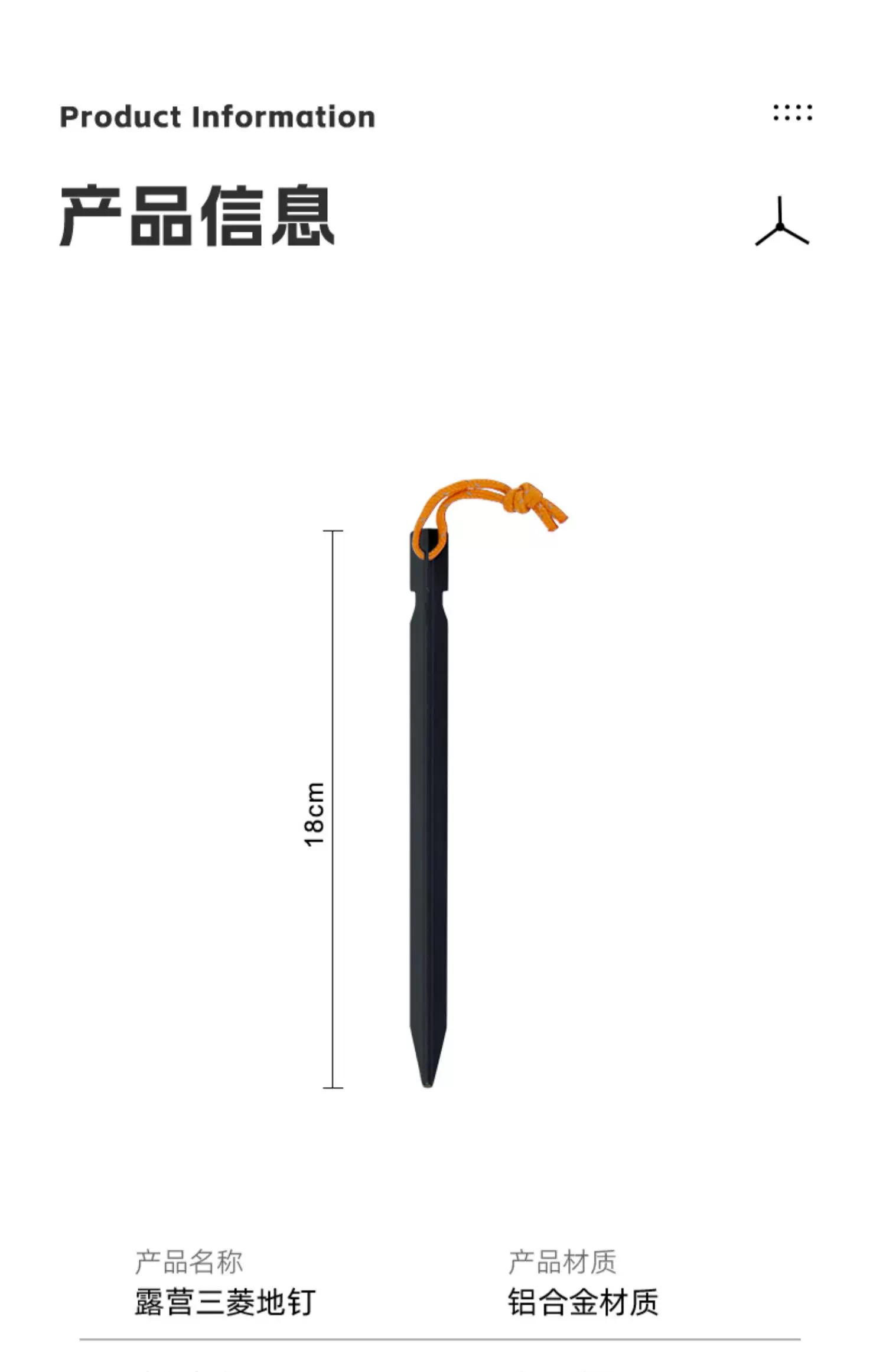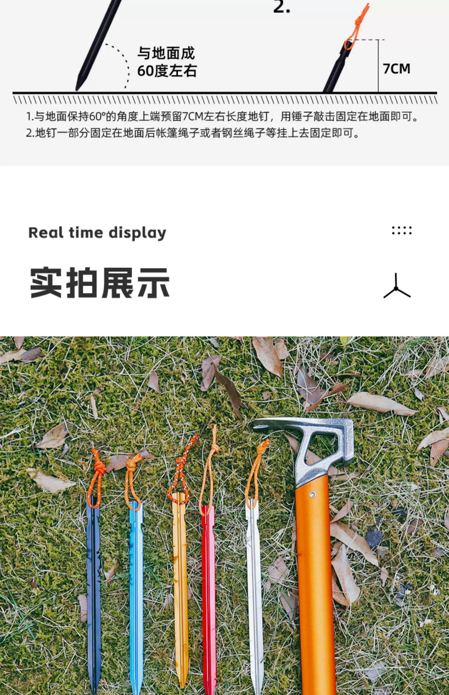 - Chốt đất hình tam giác bằng hợp kim nhôm siêu nhẹ ngoài trời dùng cho lều bạt cắm trại, chốt chống gió được gia cố 18cm có dây