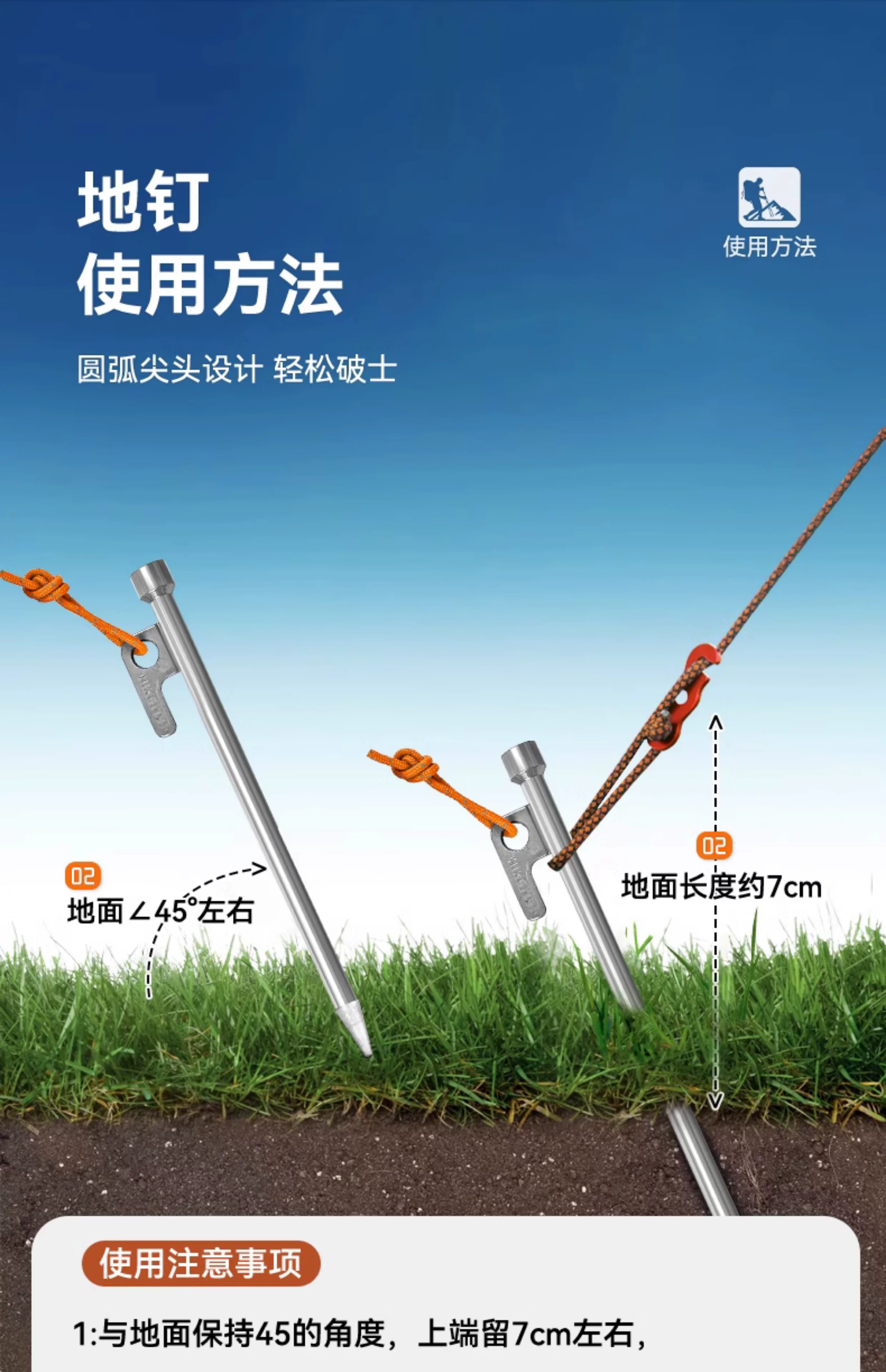 Cọc lều ngoài trời, cọc đất cường độ cao, cọc đất dày, đinh chống gió cố định mái che cắm trại trên bãi biển, đinh thép