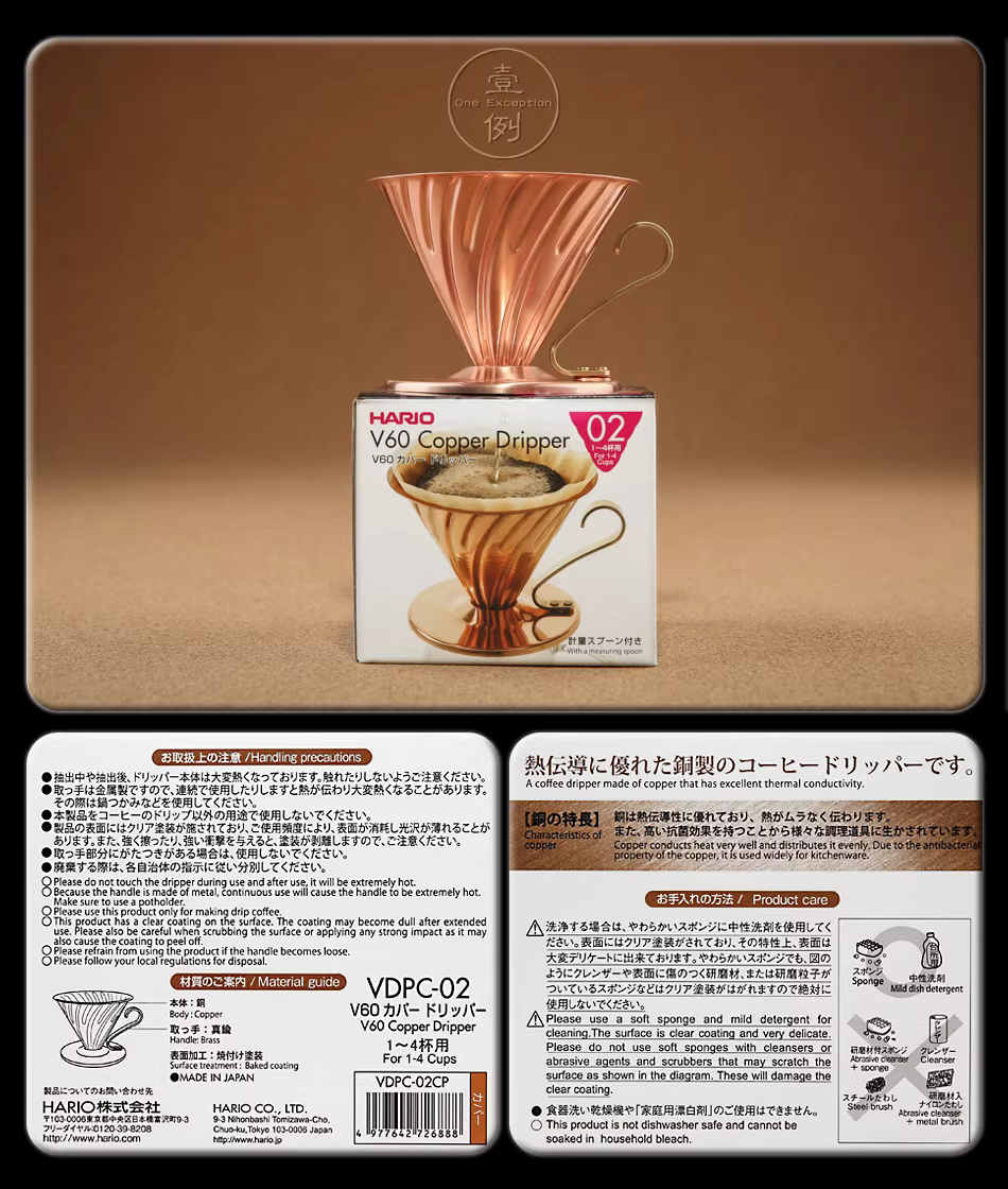 - Cốc lọc cà phê HARIO kiểu Nhật V60/cốc lọc bằng đồng thau số 02 lỗ đơn VDP-02CP