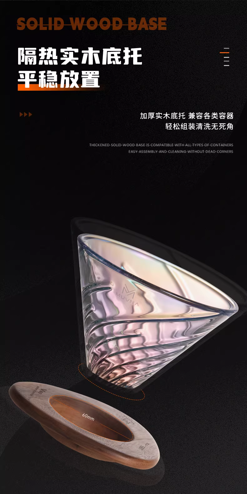 - Cốc lọc cà phê thủ công MUVNA, cốc lọc cà phê kiểu V60, cốc cà phê thủy tinh lọc nhỏ giọt