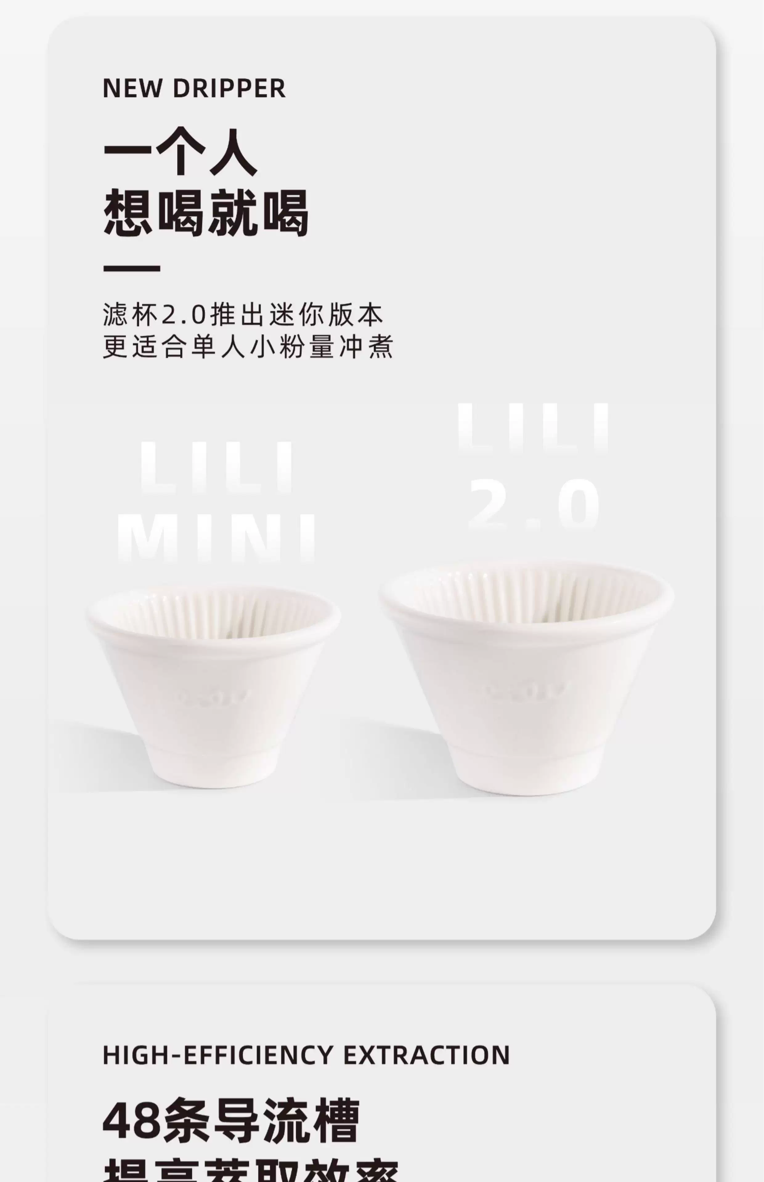 - Cốc lọc LiLi 2.0 phiên bản mini tám lỗ lọc cao cấp bằng sứ trắng, cốc lọc pha cà phê thủ công hình quạt