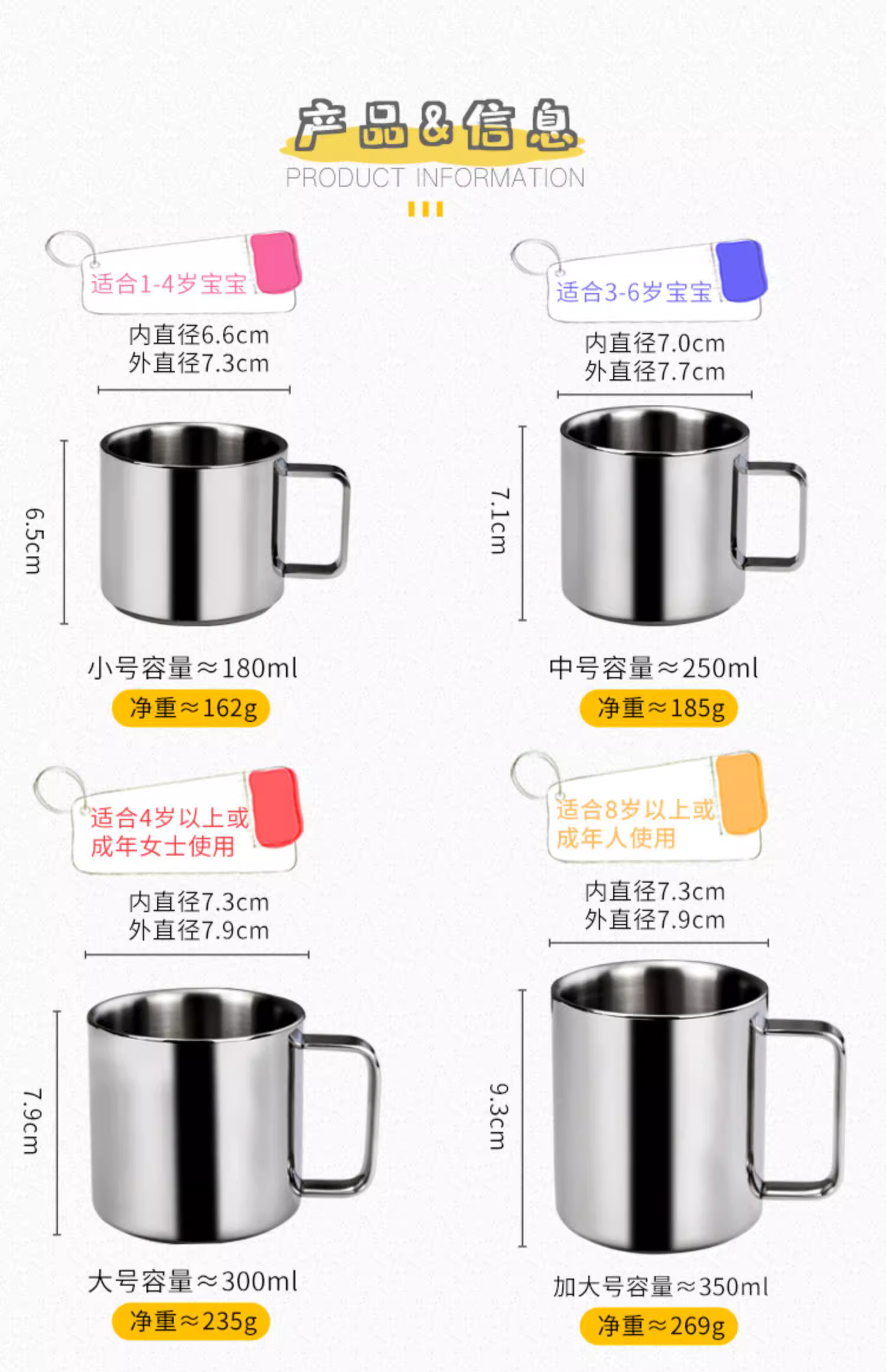 - Cốc nước mẫu giáo thép không gỉ 304 cốc sữa trẻ em cốc uống nước có tay cầm chống rơi cốc cà phê dành cho người lớn