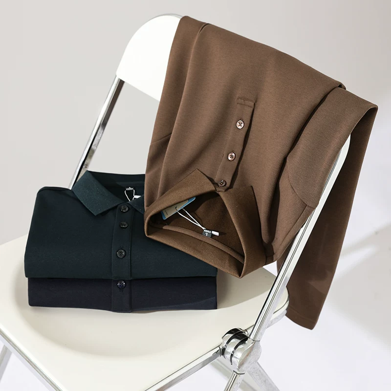 Công nghệ Don Quixote Warm Core! Áo sơ mi POLO nam chất liệu pha lụa, màu trơn, mỏng, chất liệu nỉ, tay dài, kiểu dáng thường ngày, mùa thu