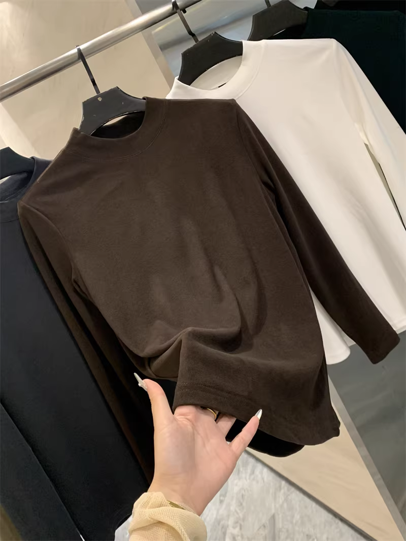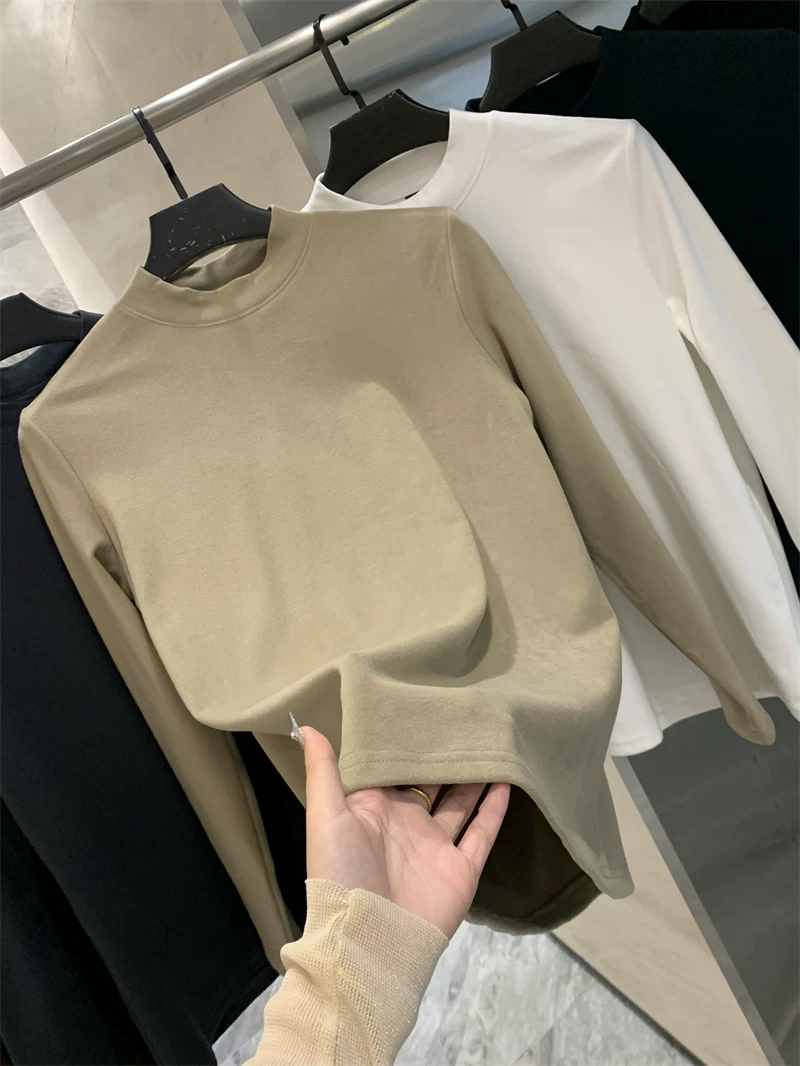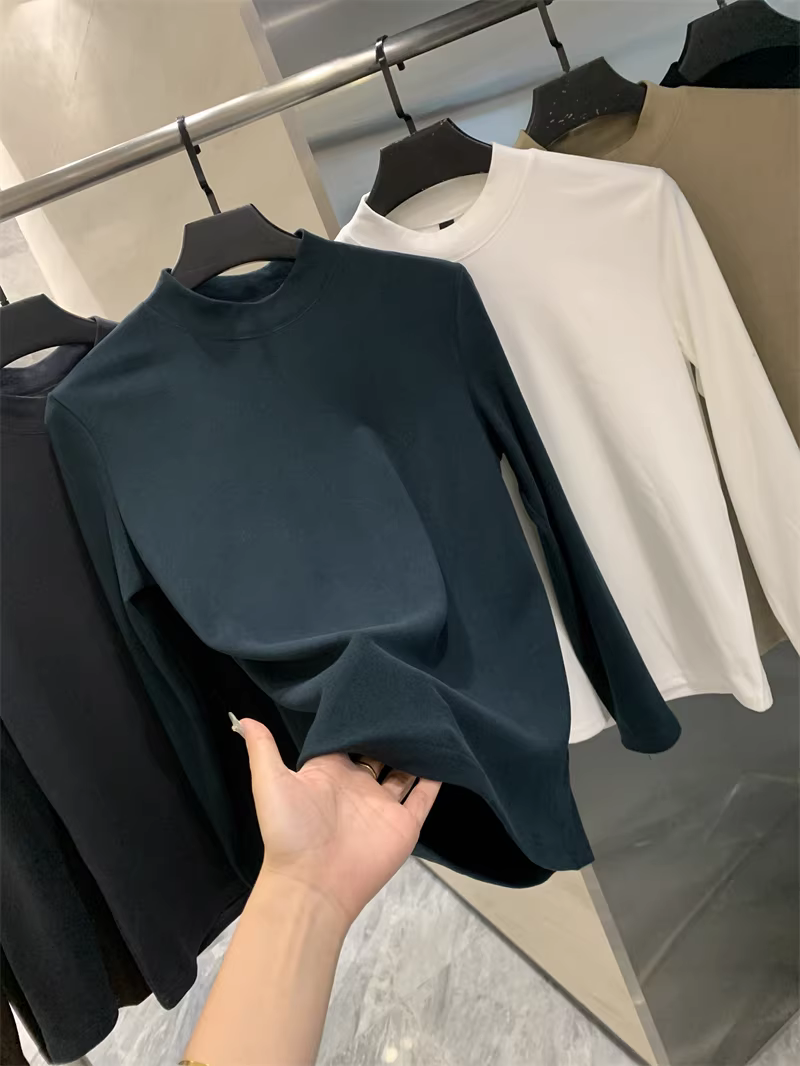 - Công nghệ kháng khuẩn Don Quixote 7A! Lông cừu hai mặt cơ bản! Áo thun lớp nền ấm áp cổ cao nửa cổ màu trơn mùa thu đông.