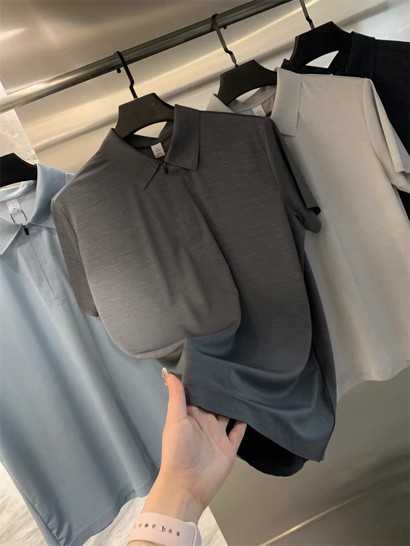Công nghệ làm khô nhanh Don Quixote Ice Skin! Áo polo nam ngắn tay, chất liệu mềm mại như lụa, co giãn cao, mặc mùa hè.