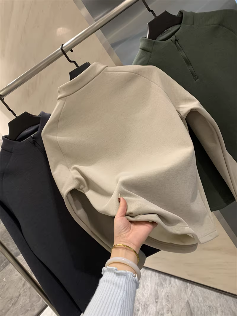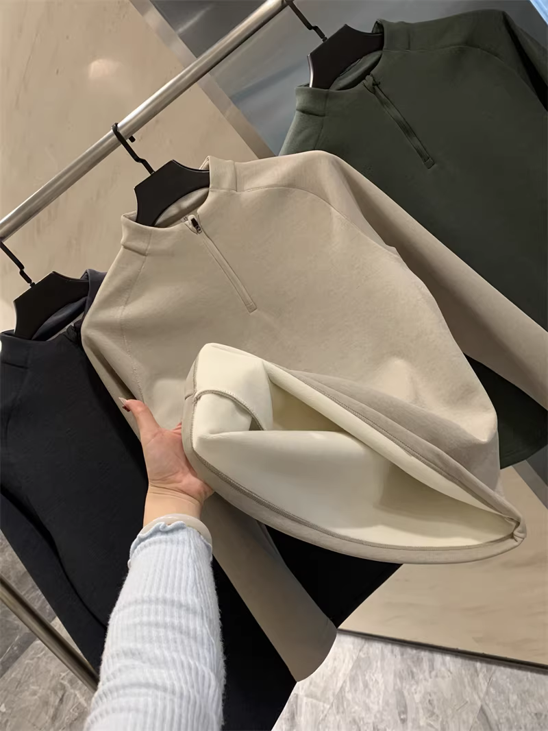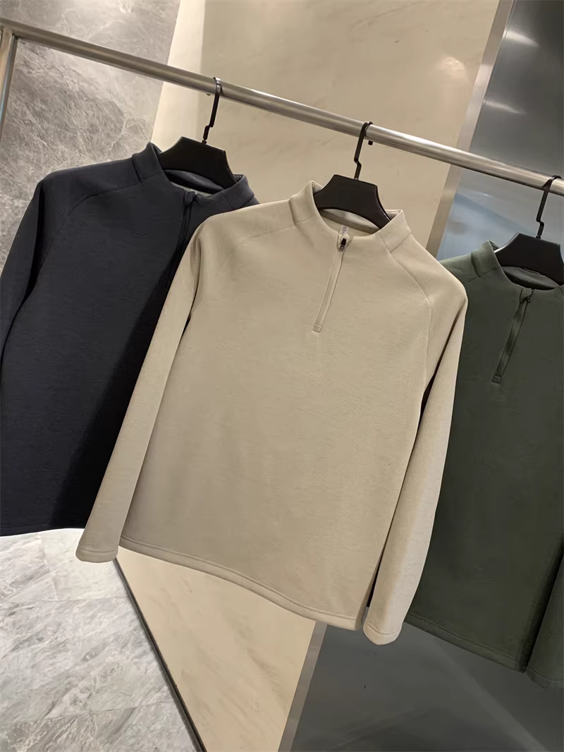 - Công nghệ ngoài trời Don Quixote! Áo len nam màu trơn nửa khóa kéo nửa cổ cao phong cách chức năng mùa thu đông hợp thời trang