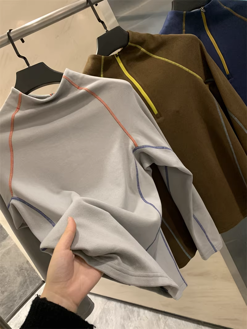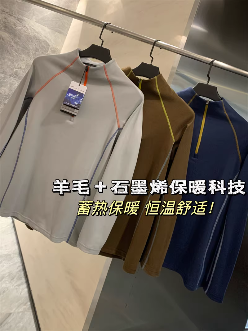- Công nghệ nhiệt graphene Don Quixote + Lưu trữ nhiệt bằng len và giữ nhiệt! Áo lót dài tay cổ đứng có đường may phối màu