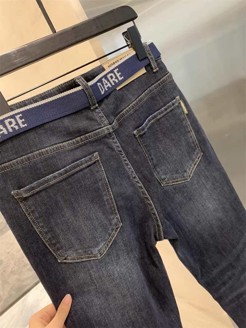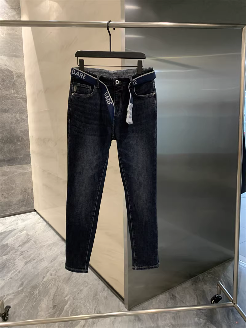 - Công nghệ sợi nhiệt Don Quixote! Tặng thắt lưng! Quần jean nam màu xanh cổ điển, lót lông cừu, ấm áp, phong cách thường ngày